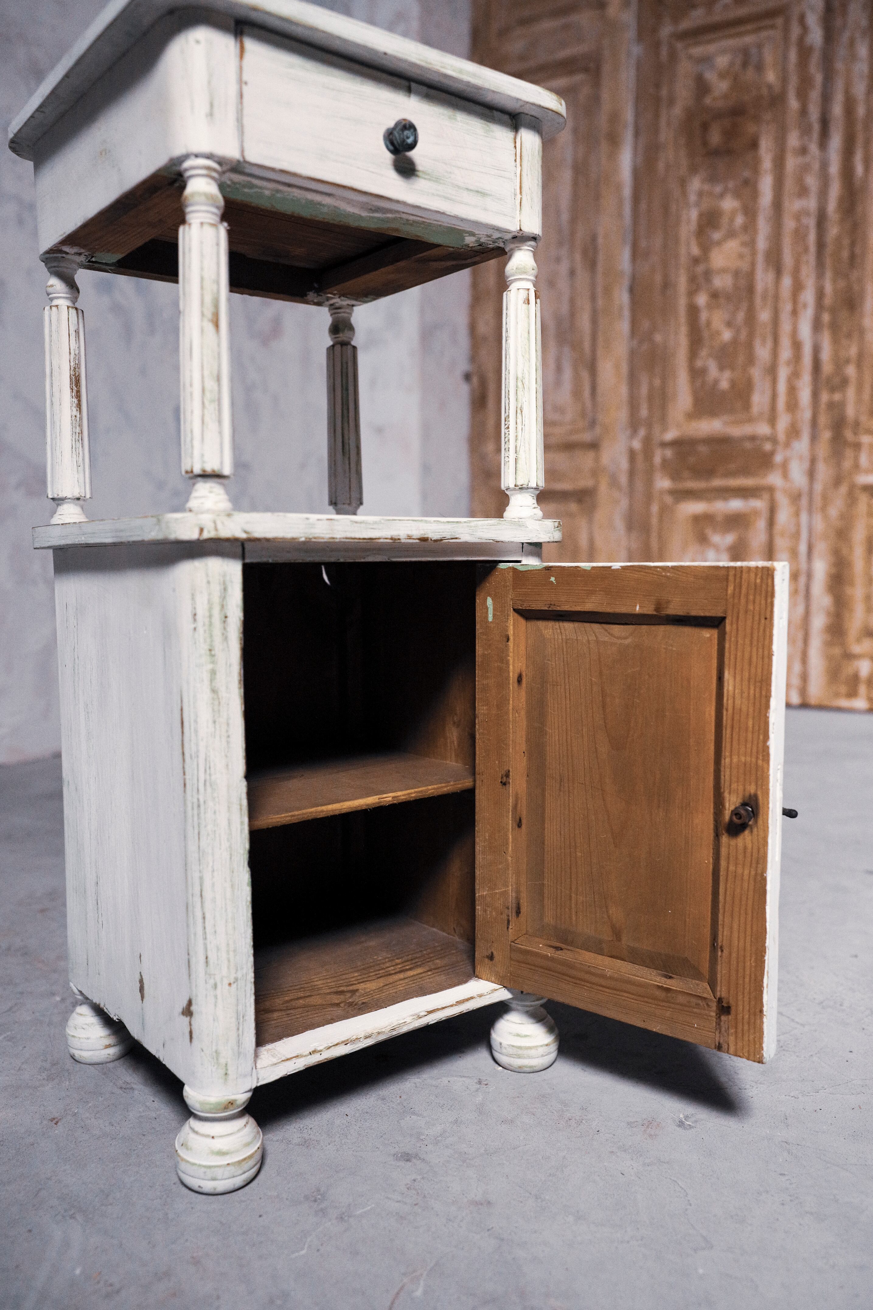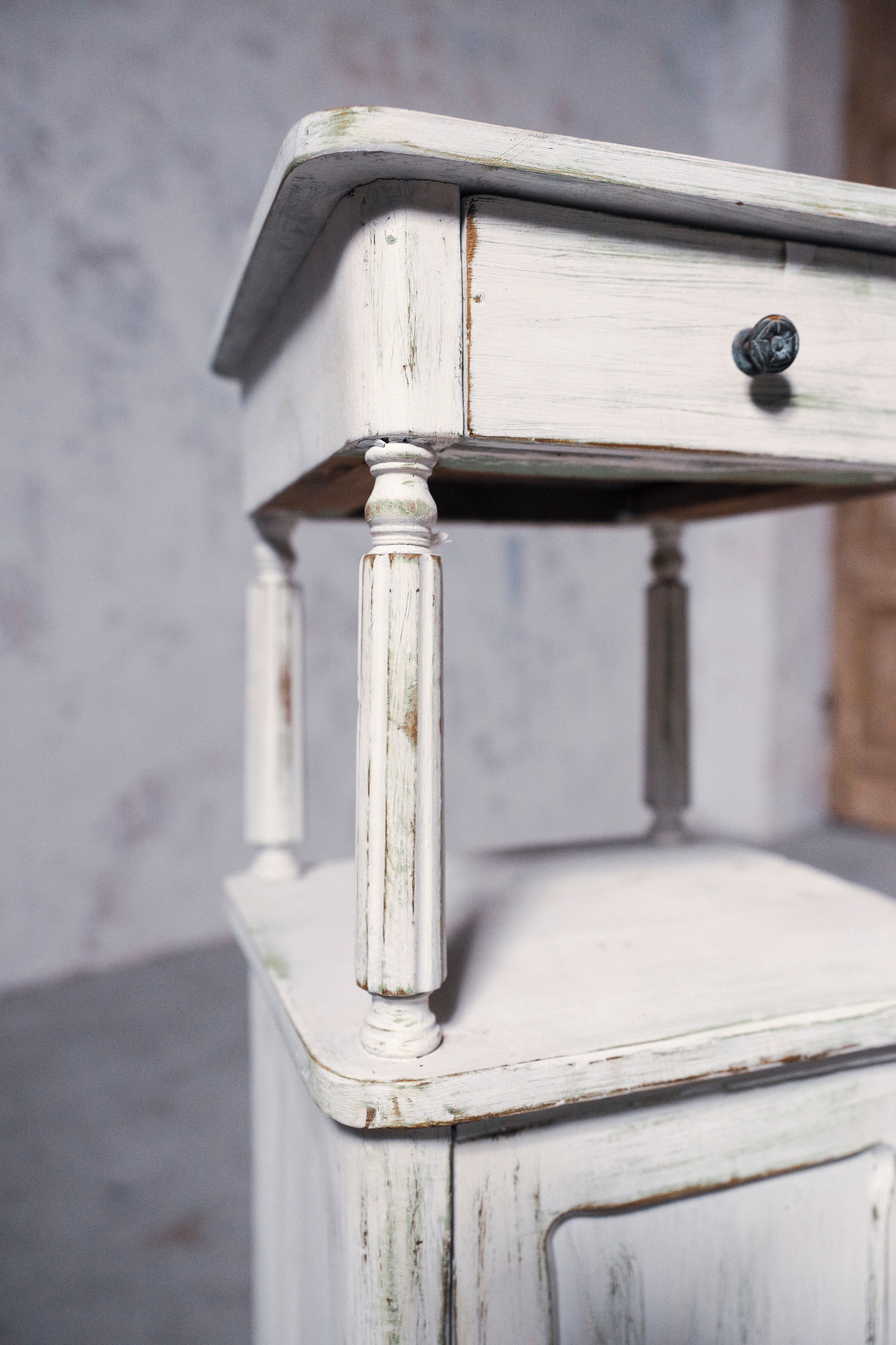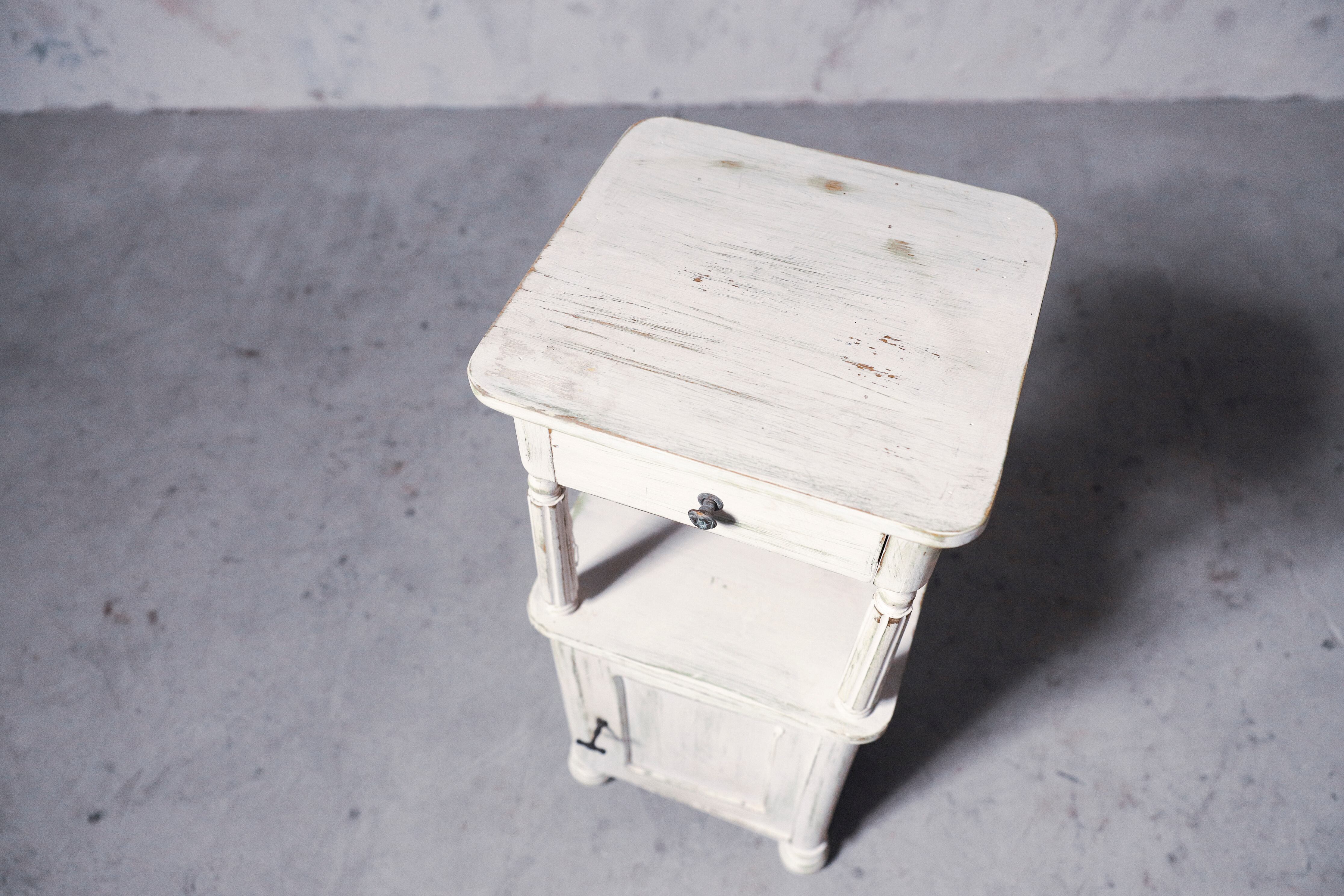ホワイトペイントでフランスらしい佇まいのナイトテーブル。