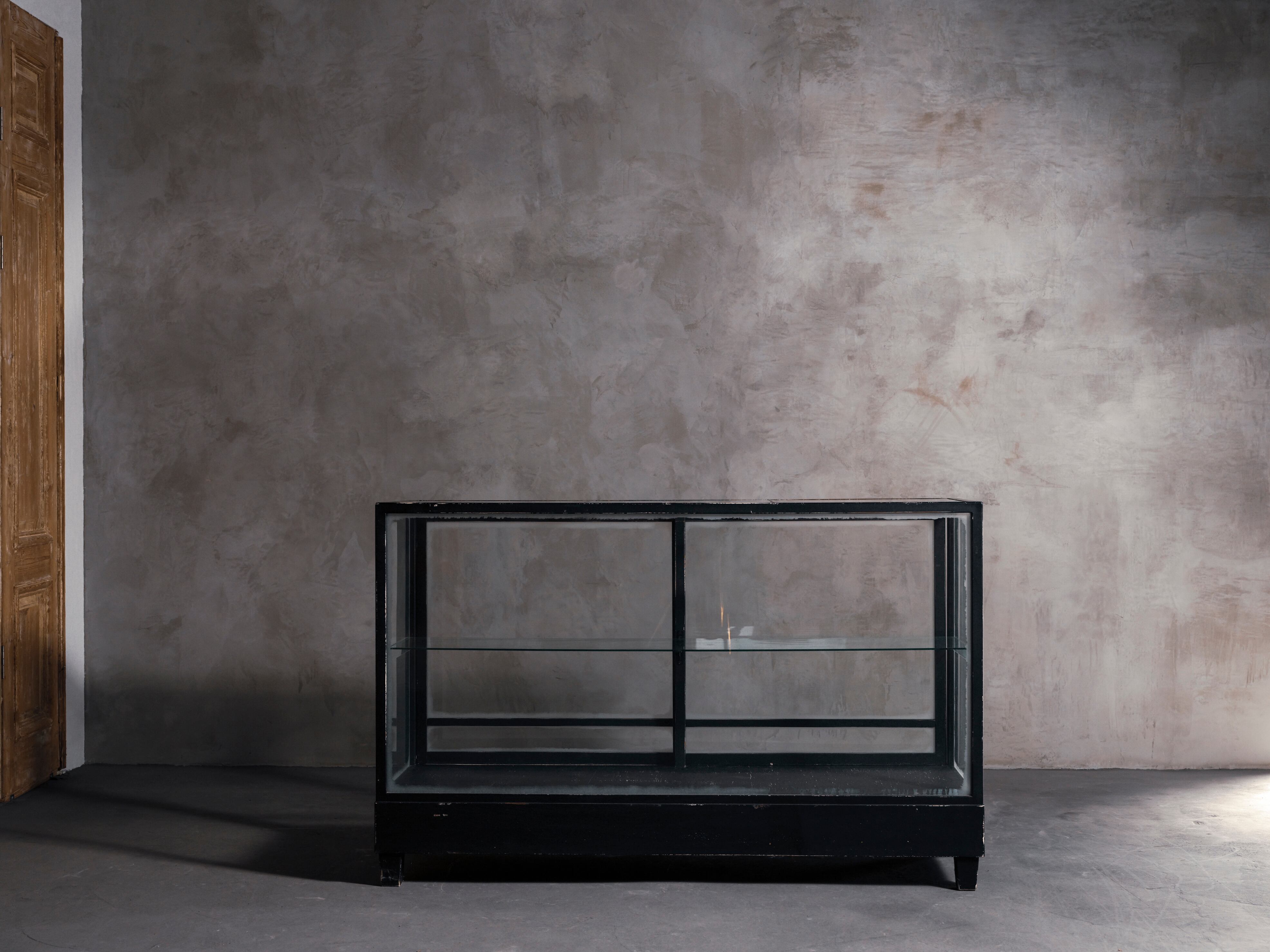 ブラックのラインが物静かでかっこいい雰囲気を放つショーケース。