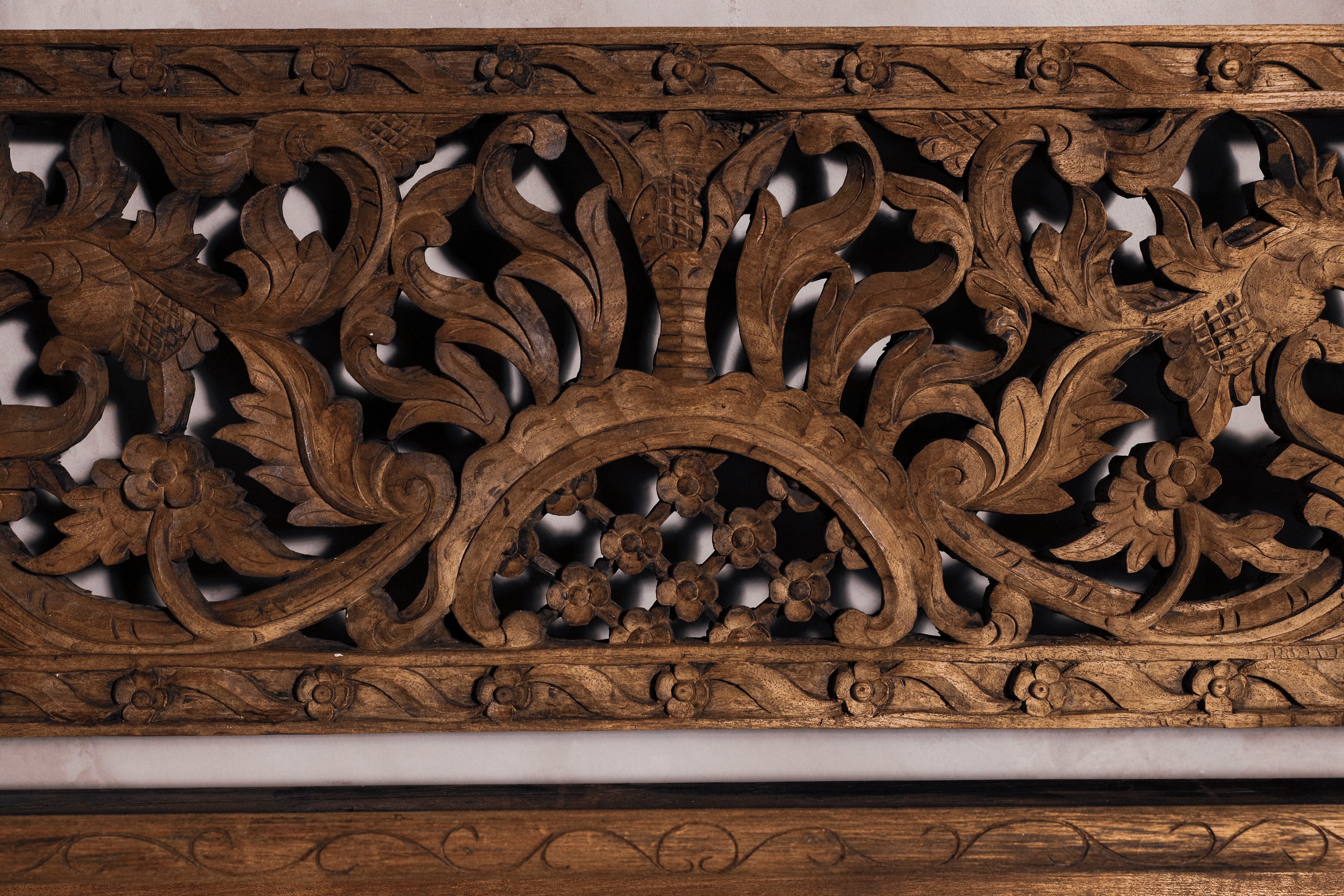 上部の壮大かつ細やかな装飾に思わず誰もが目を奪われるような、存在感のあるウォールラック
