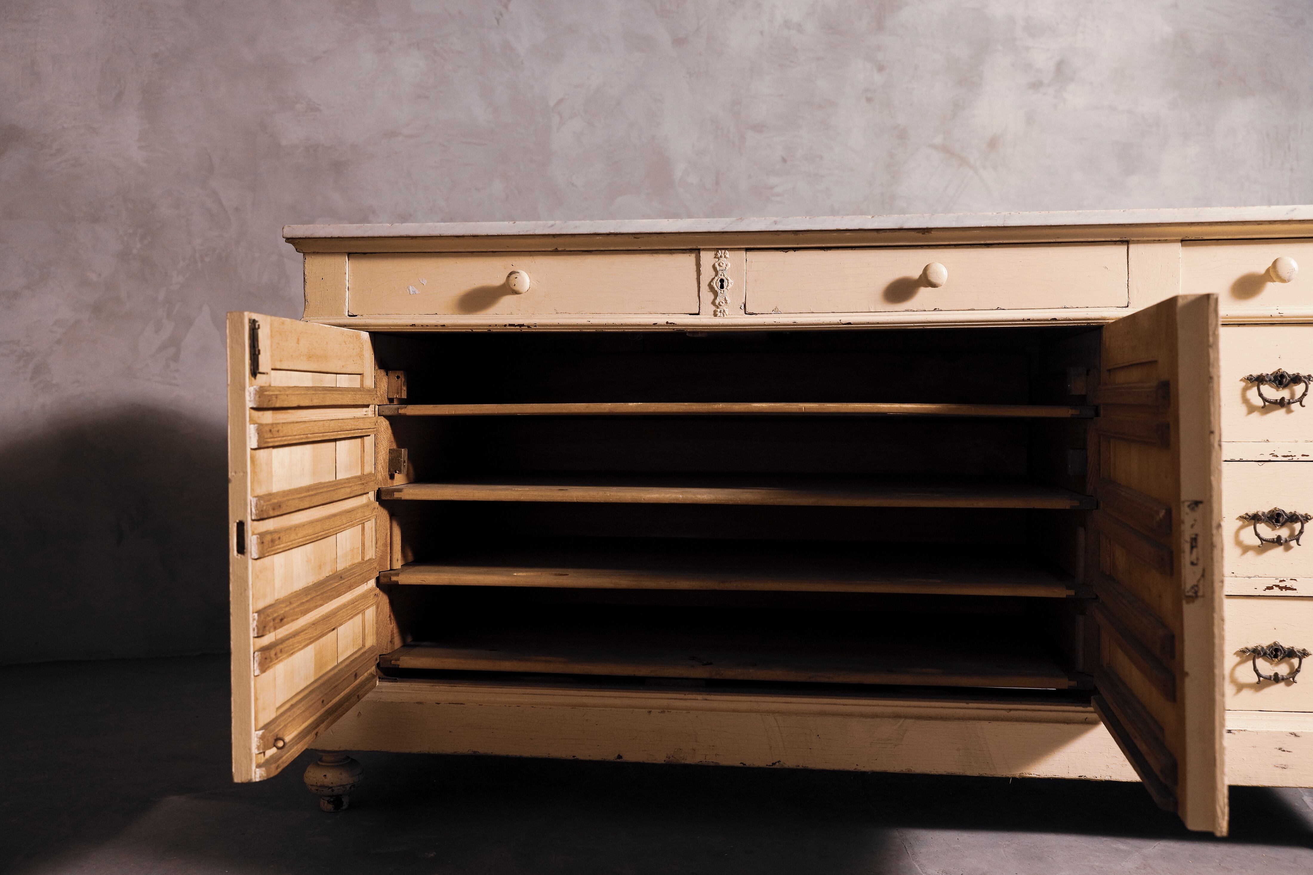 カウンター/キッチンカウンター/キッチンサイドボード/マーブルトップ/大理石/花柄/店舗什器/空間装飾/ディスプレイ