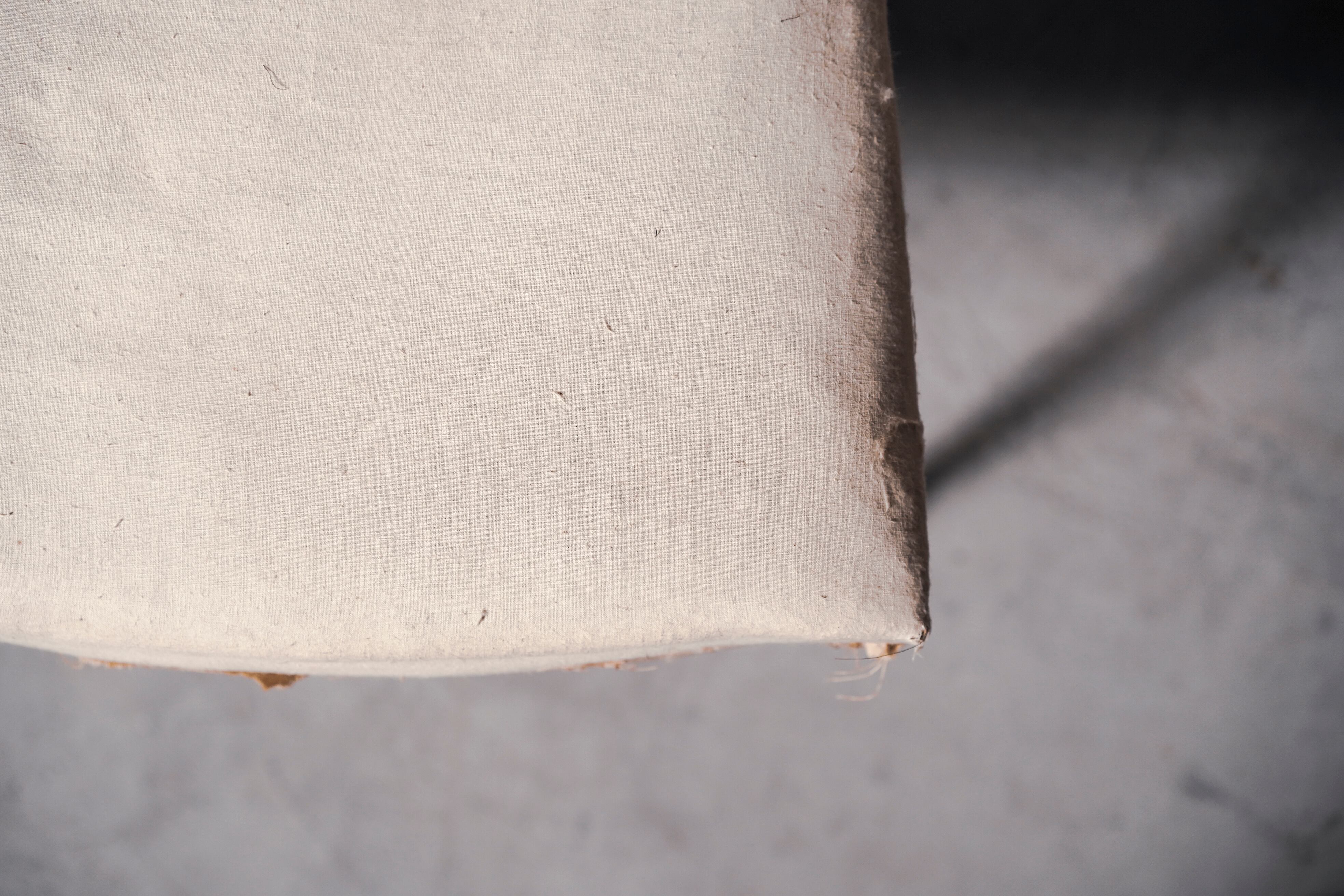 シート部分には元々柄のついたファブリックが張られていましたが、剥がして下地部分をむき出しにすることであえて素朴な雰囲気をお楽しみいただけるようにしています。
