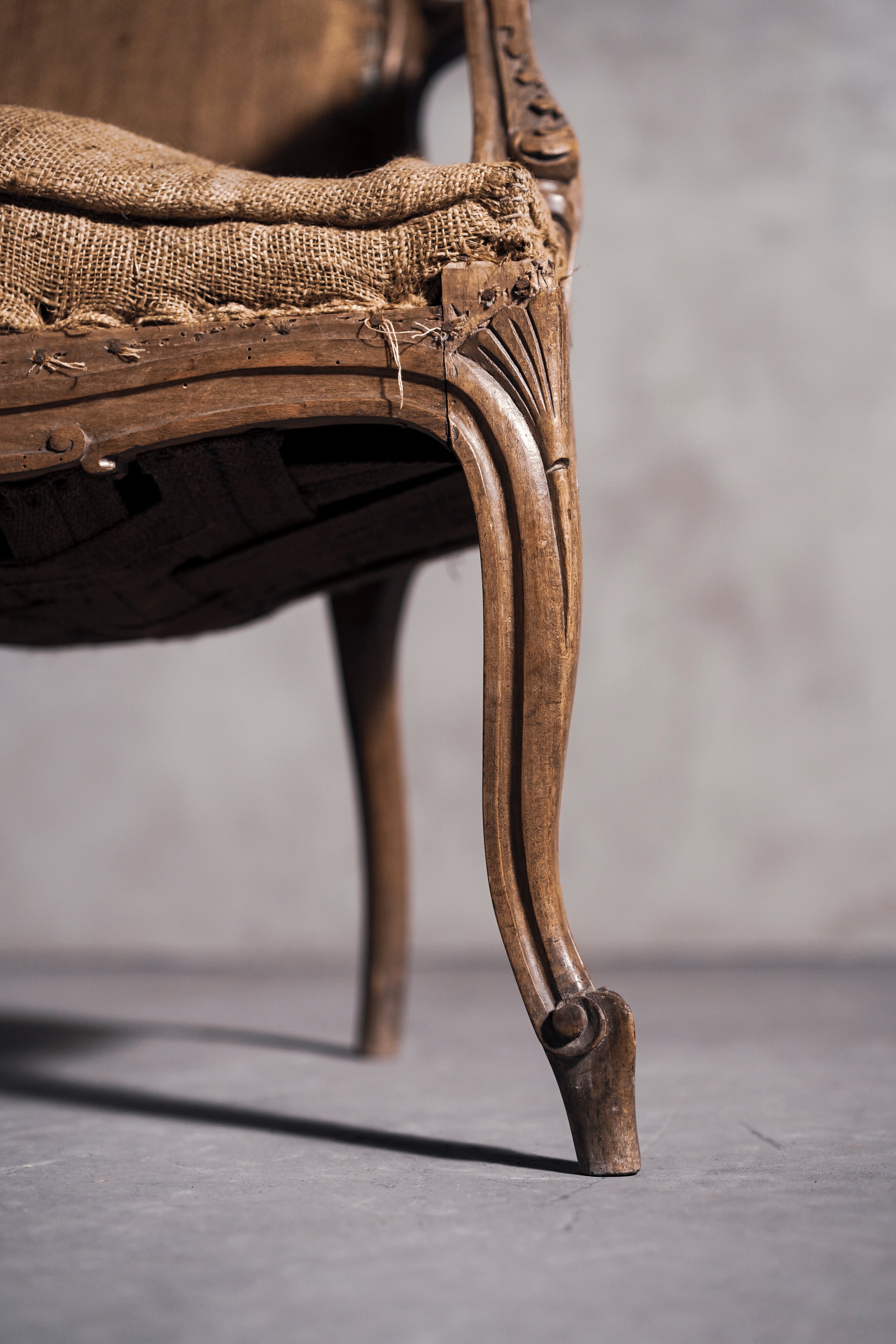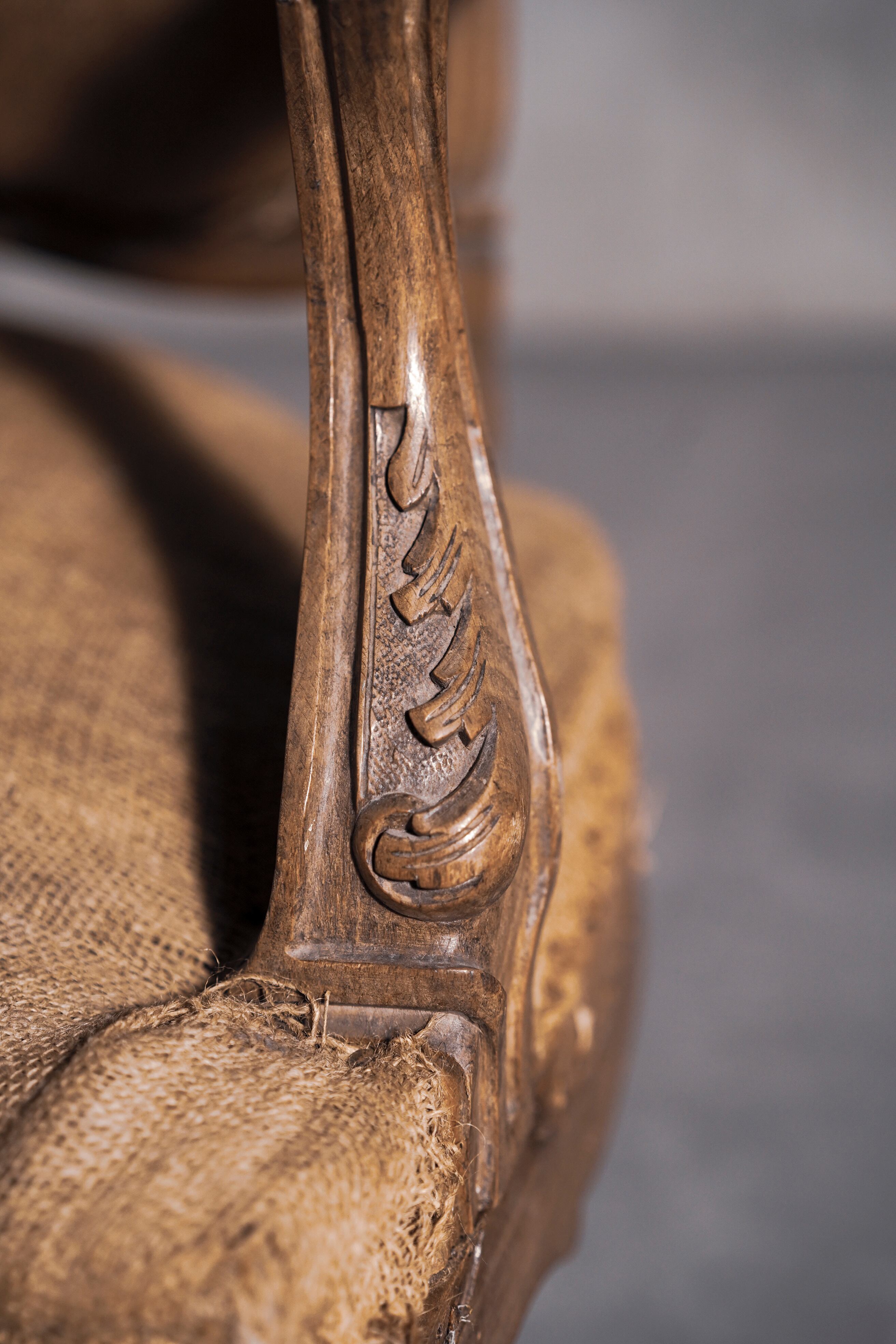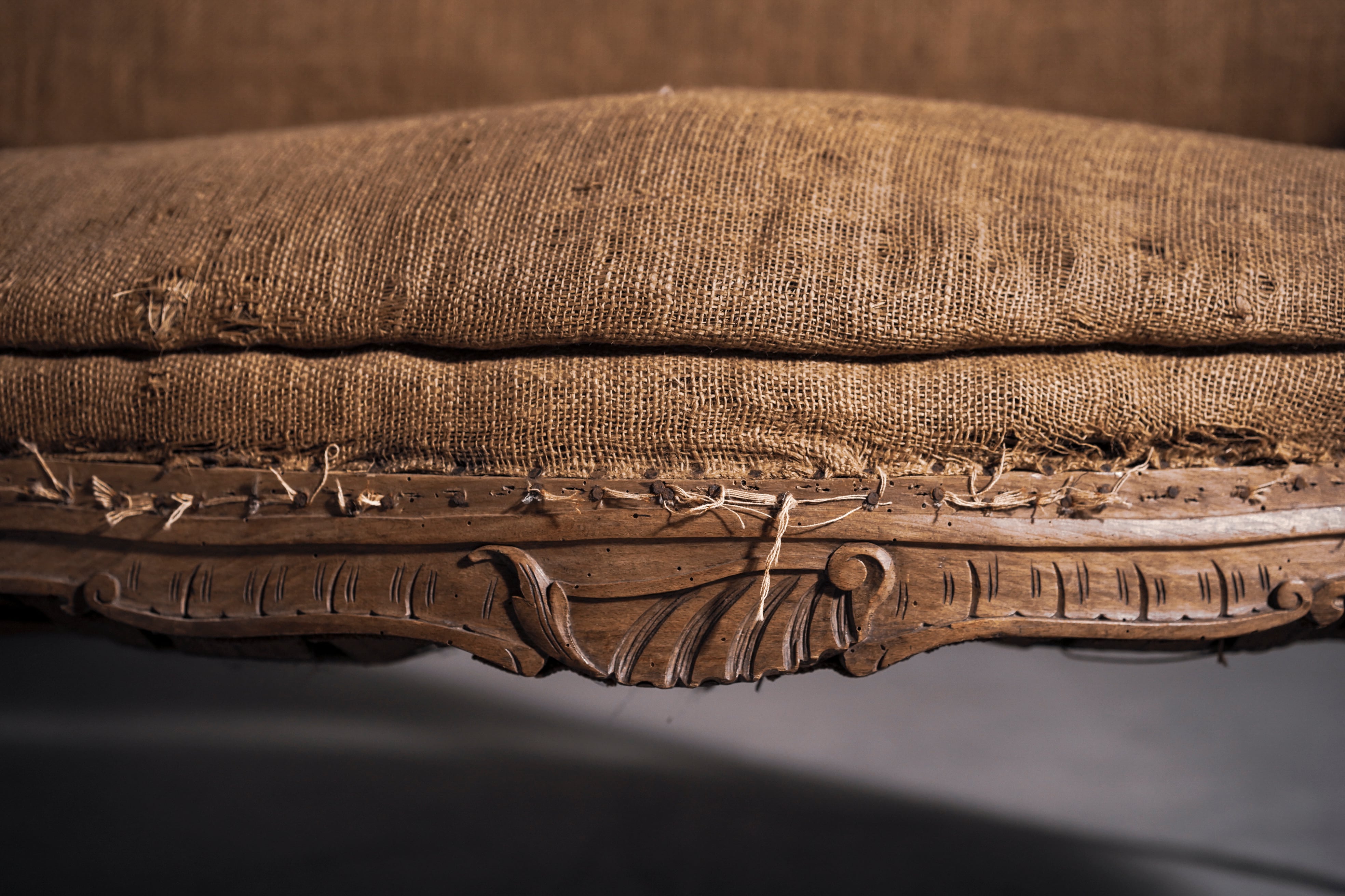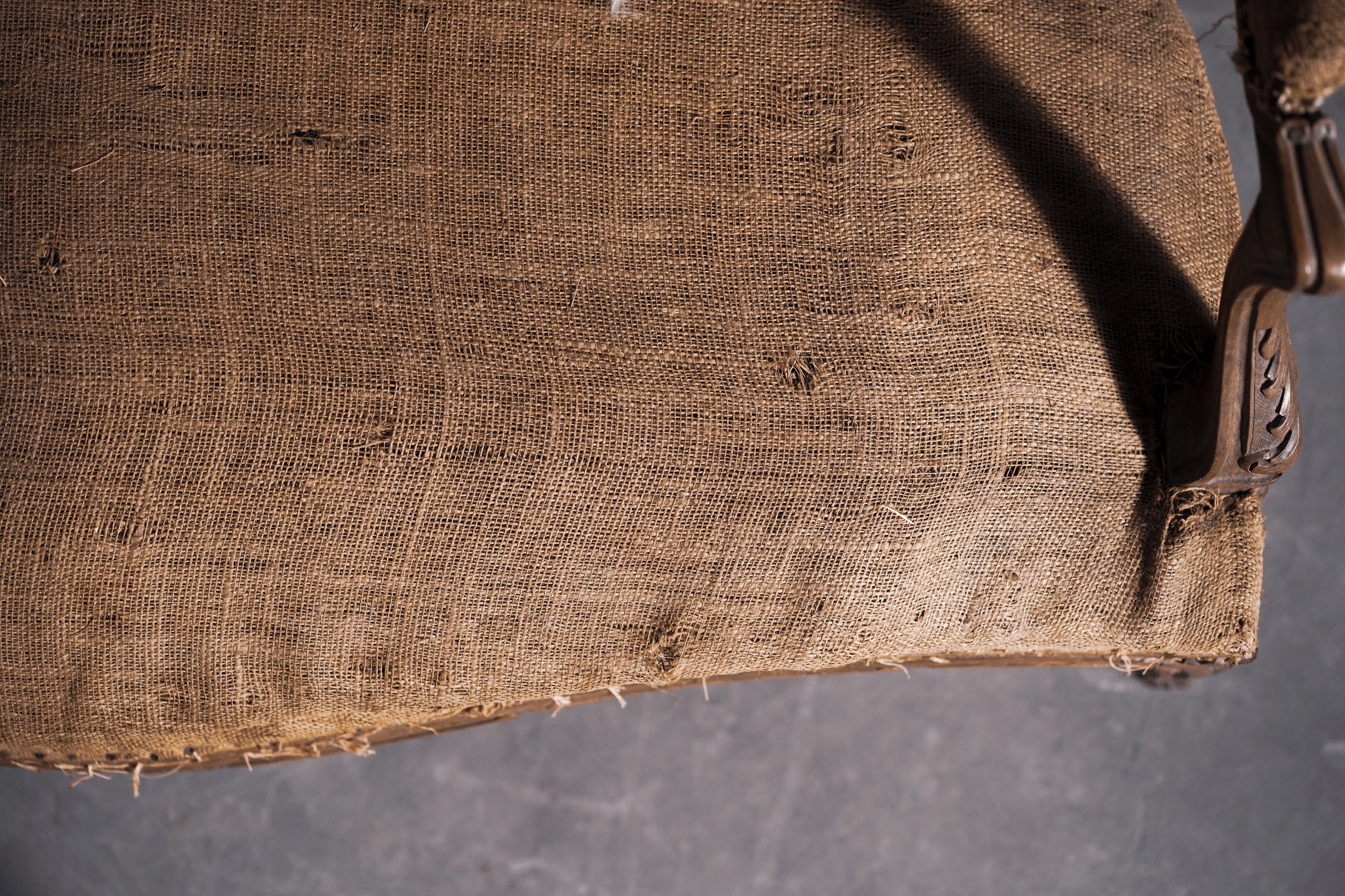 こちらは元々張られていたシートを剥がし、あえてジュート下地のままの姿にしてあるヌード家具になります。フランスのアンティークフェアや蚤の市などでも最近よく見られるスタイルで、素朴ながら絵になる姿に魅力を感じて買い付けたアイテムです。