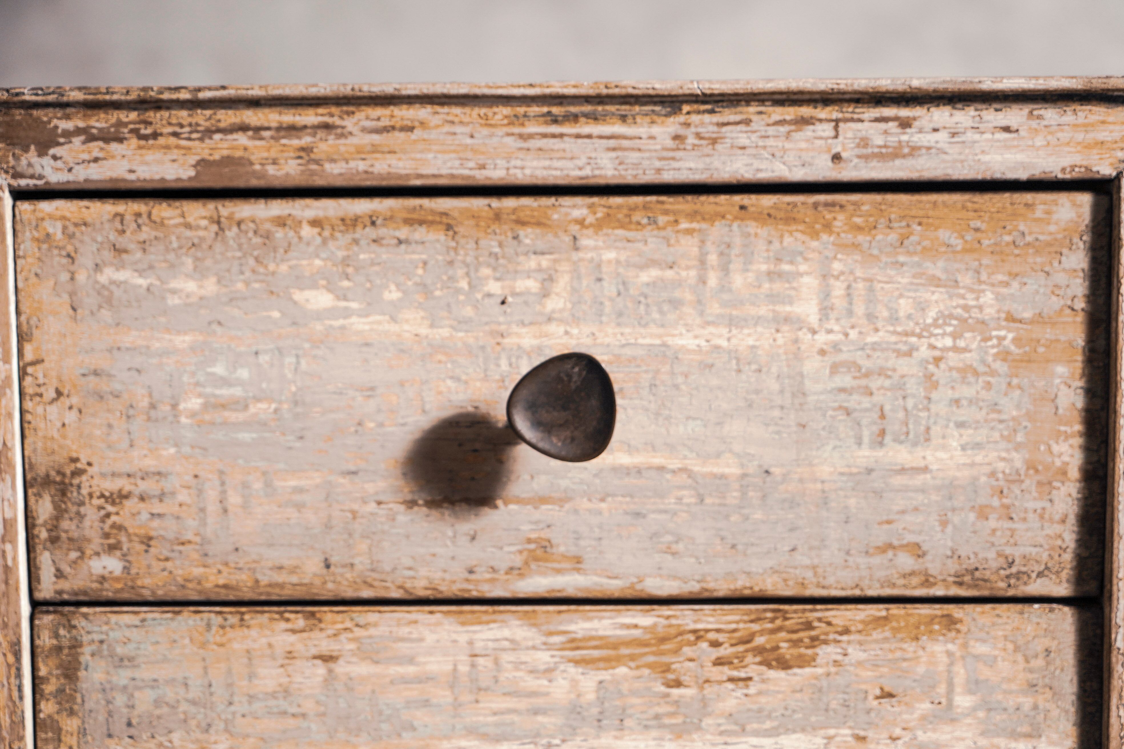 シャビーなペイントがアンティーク感を際立たせているチェスト。
