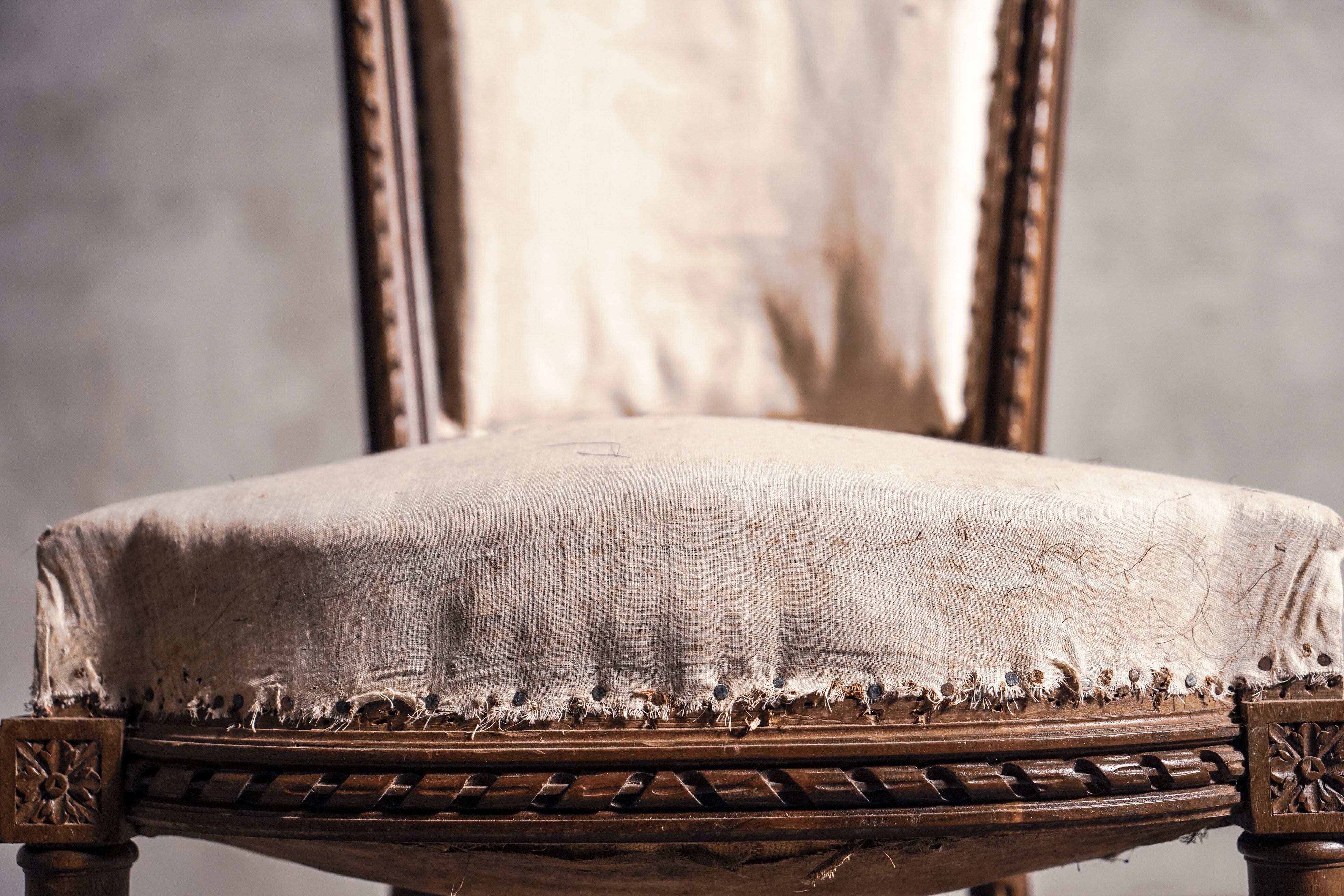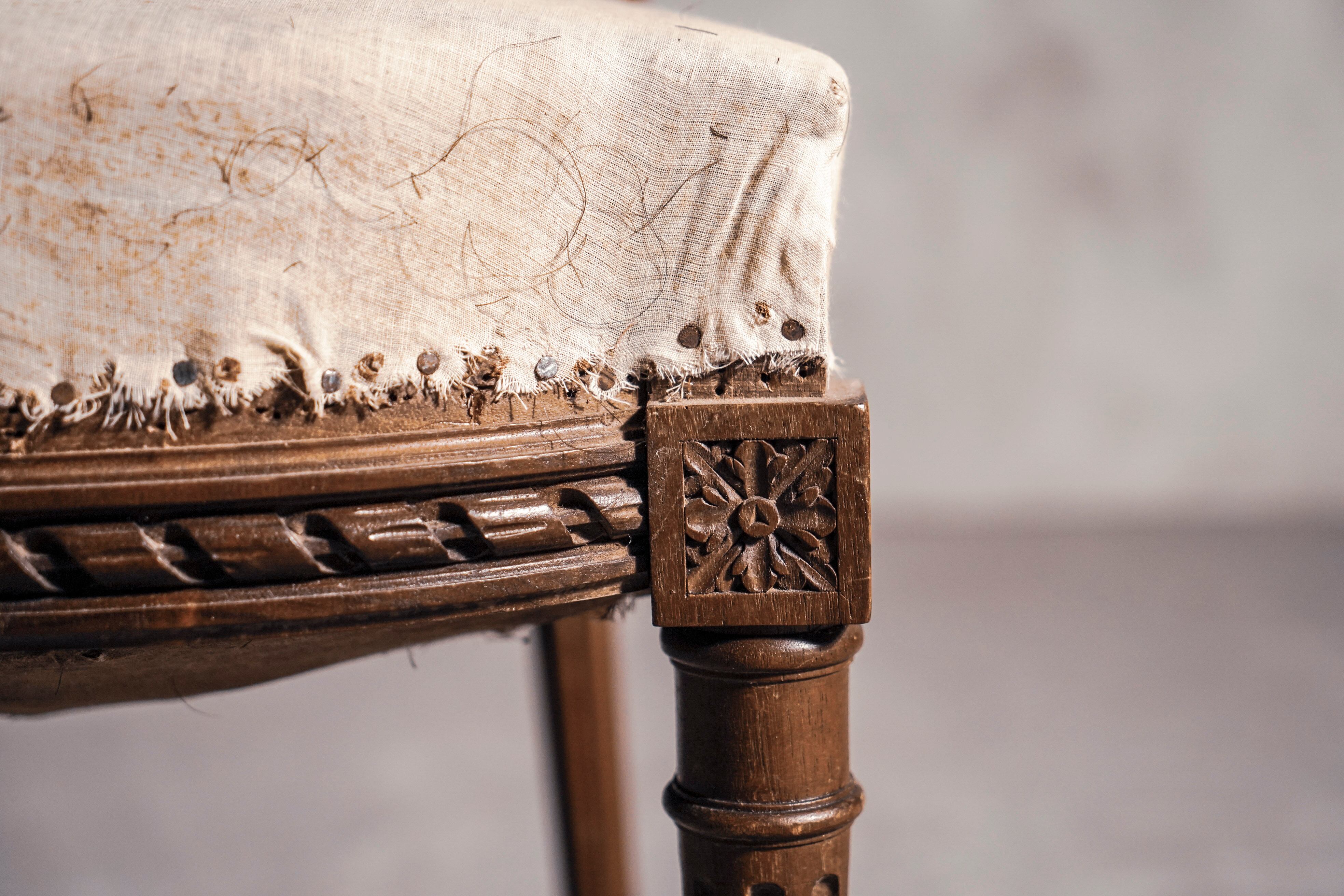 こちらは元々張られていたシートを剥がし、あえて下地のままの姿にしてあるヌード家具になります。