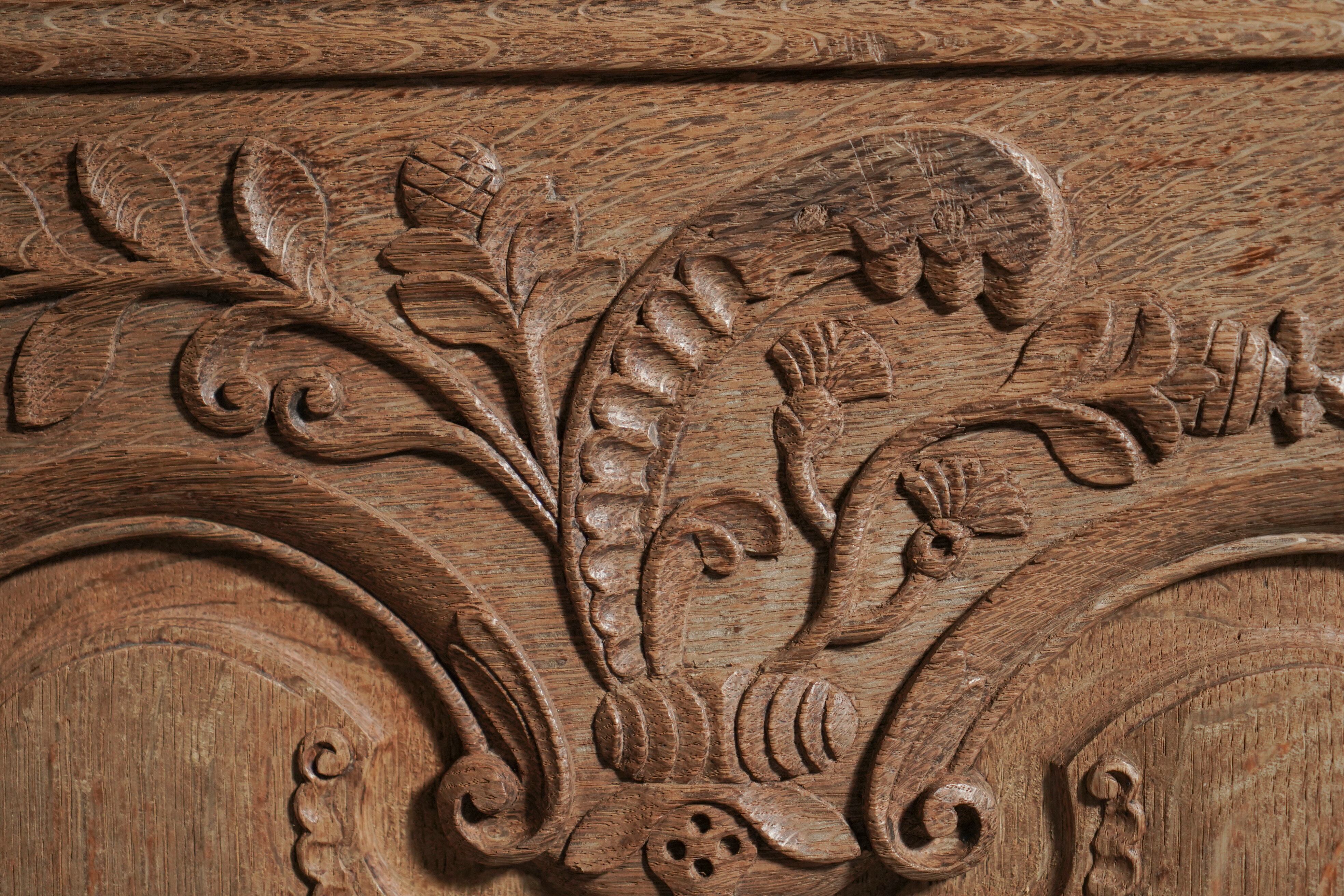 左右対称の植物モチーフのレリーフが美しく厳かで、独特の雰囲気を放つサイドボードです。