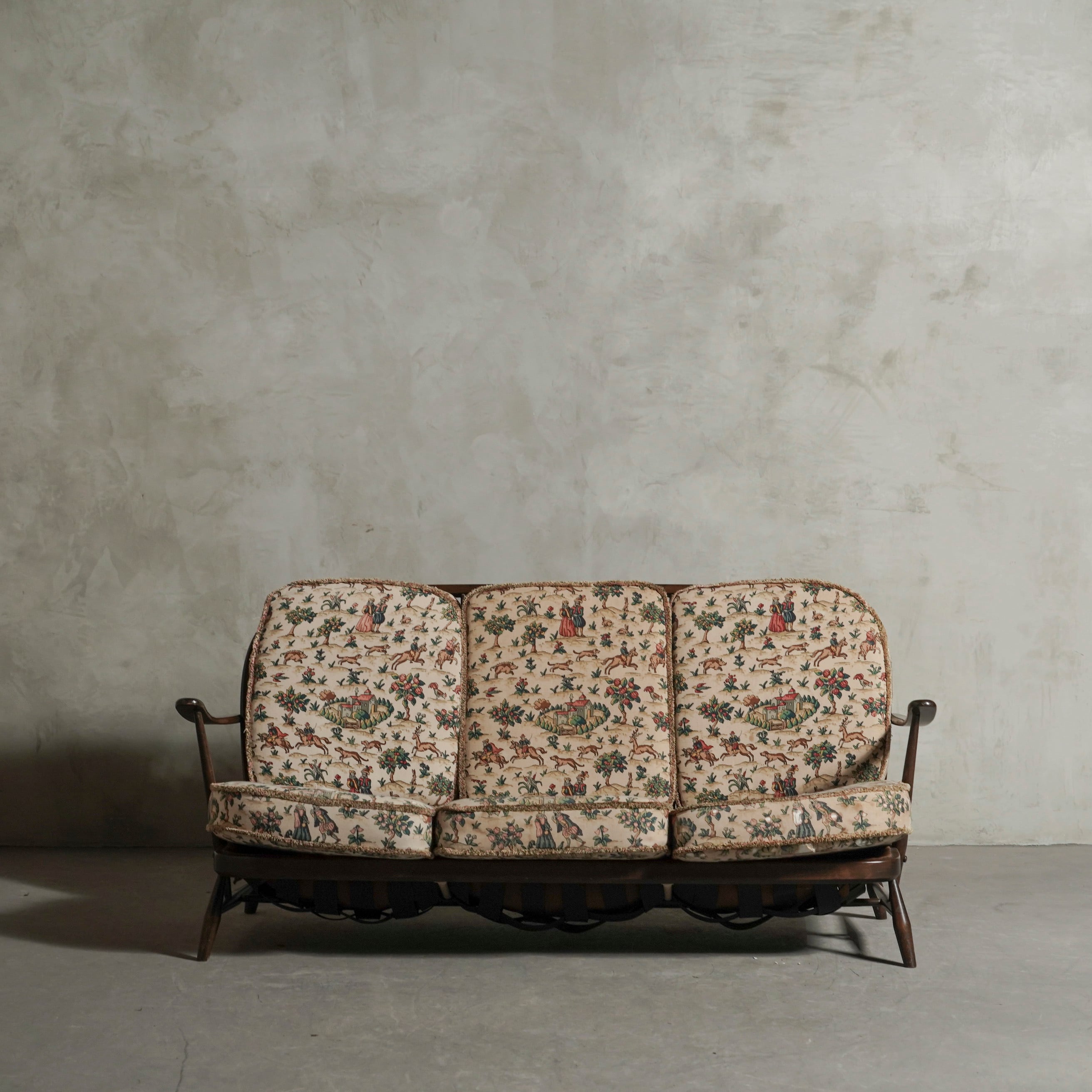 ソファ/ーコールソファー/アンティークソファー/3シーターソファー/クッション付き/植物/馬/花柄/店舗什器