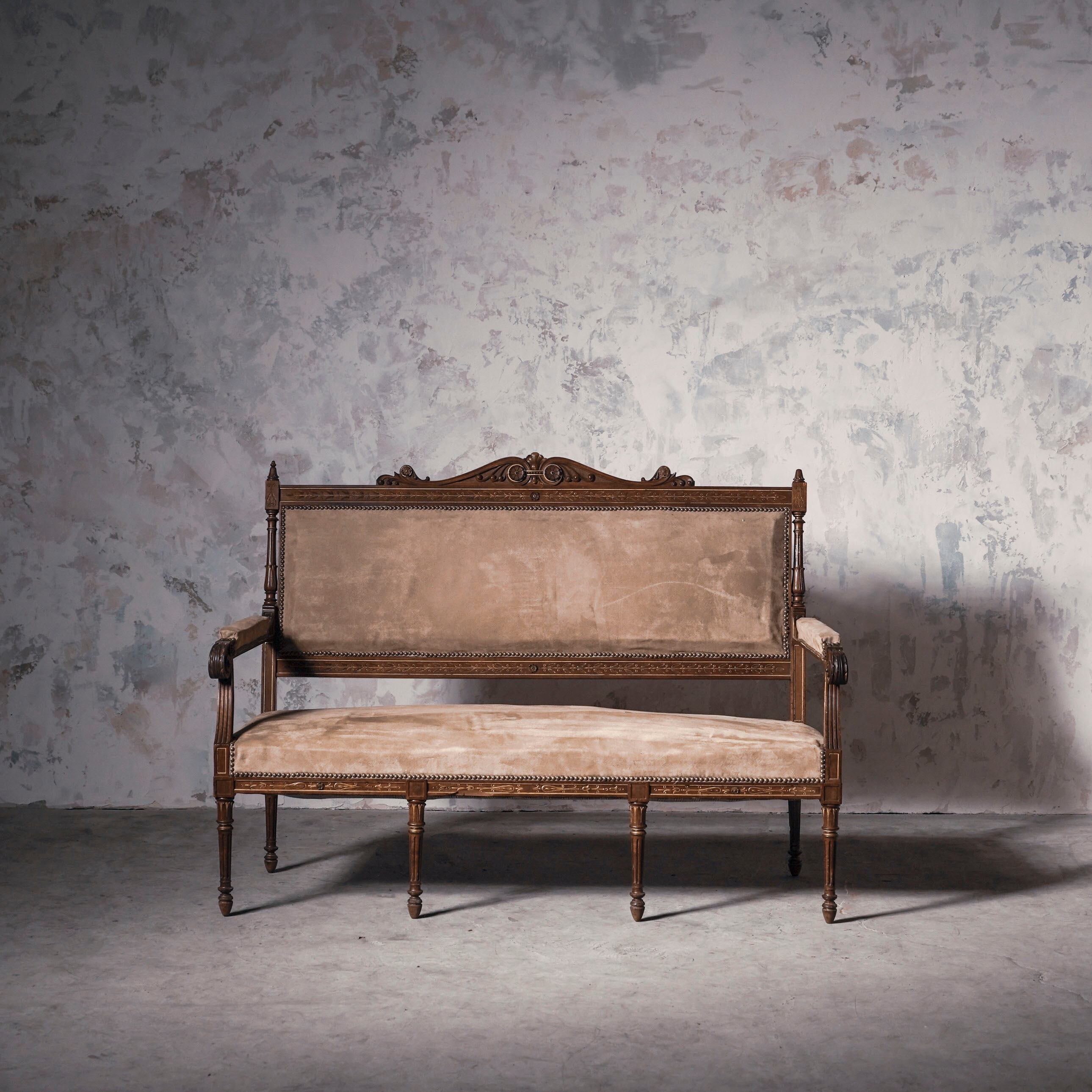 ソファ/アンティークソファー/サロンソファー/マホガニー/ベロア素材/空間装飾/ディスプレイ/撮影アイテム