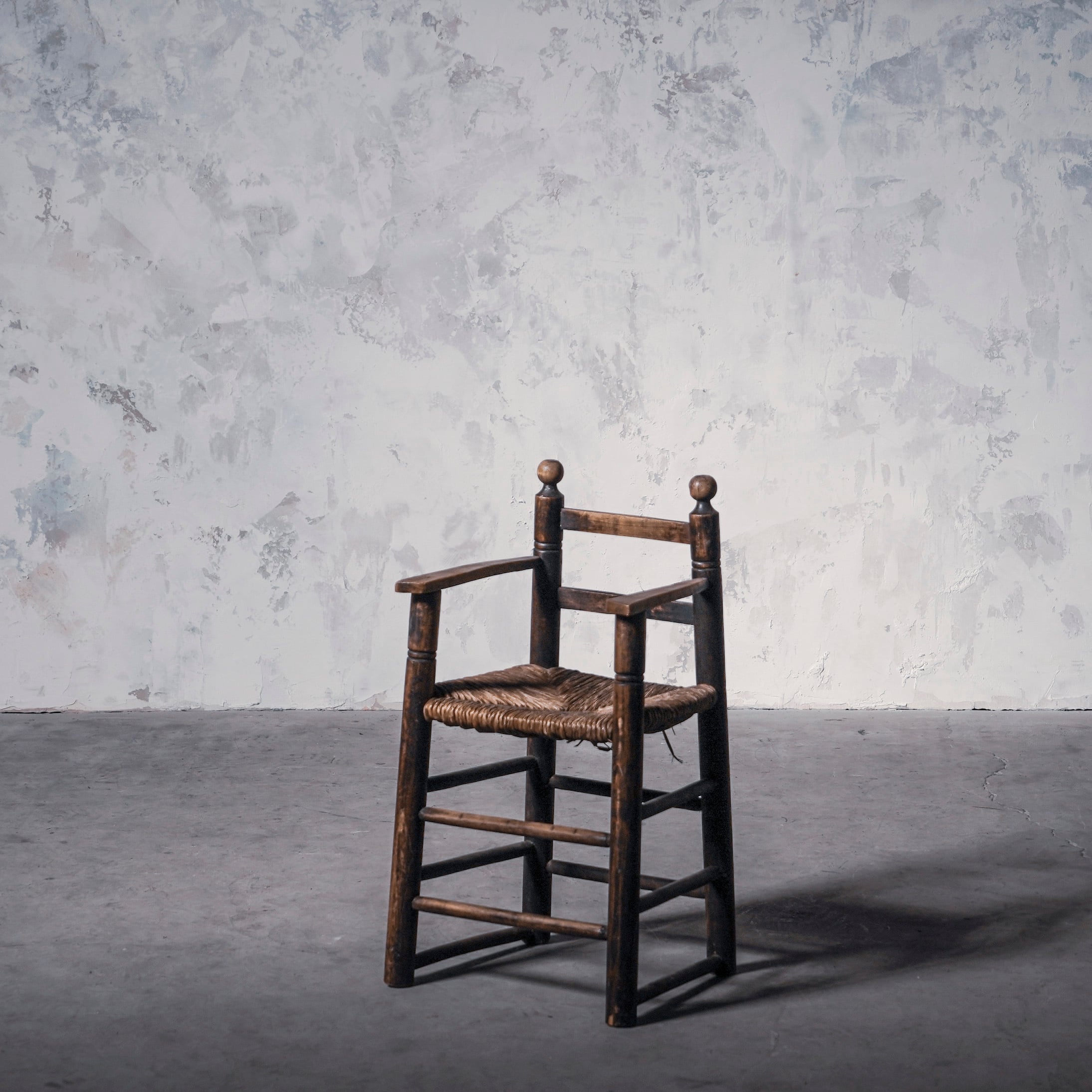 ラスティックな雰囲気が漂うアンティークベビーチェアー。