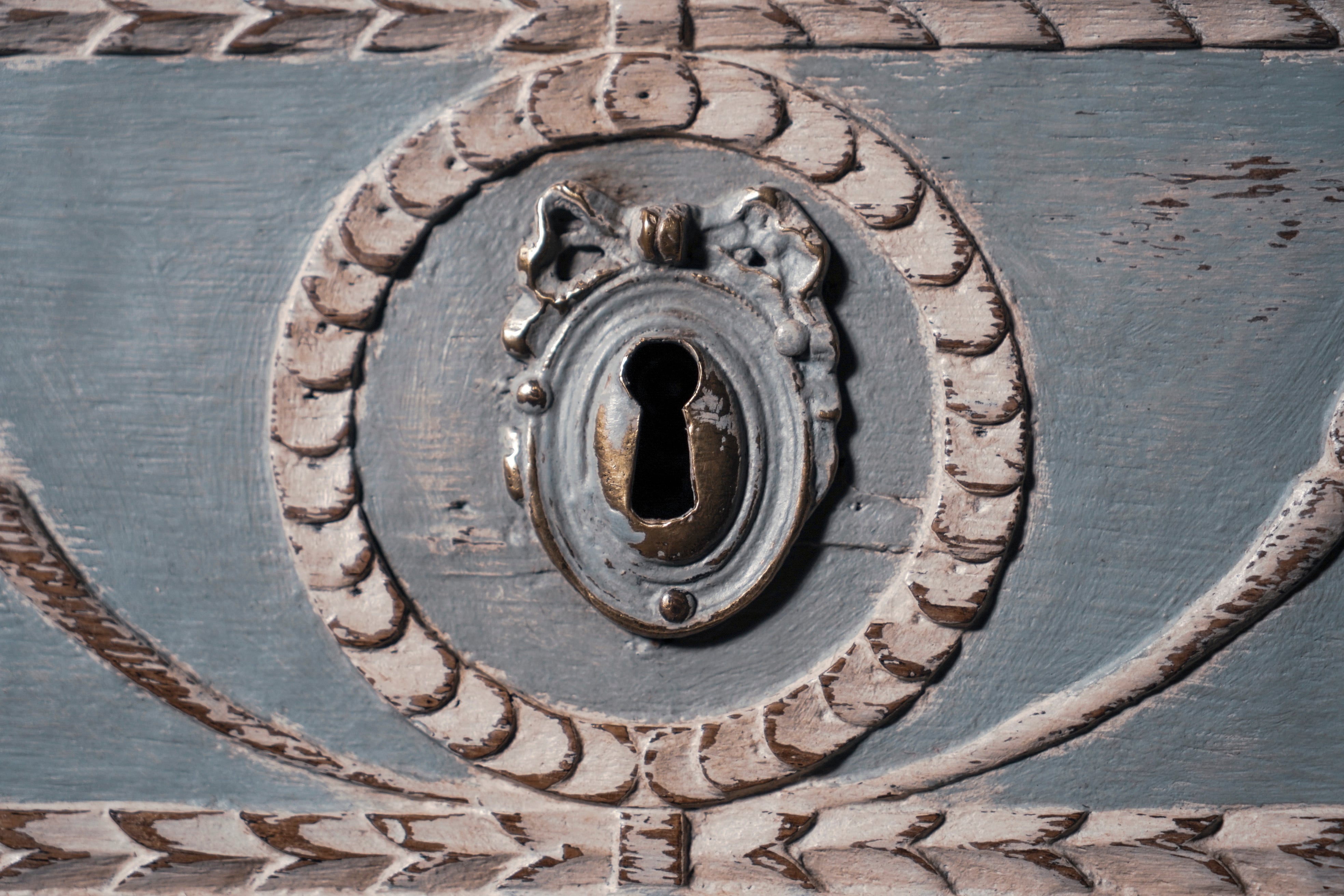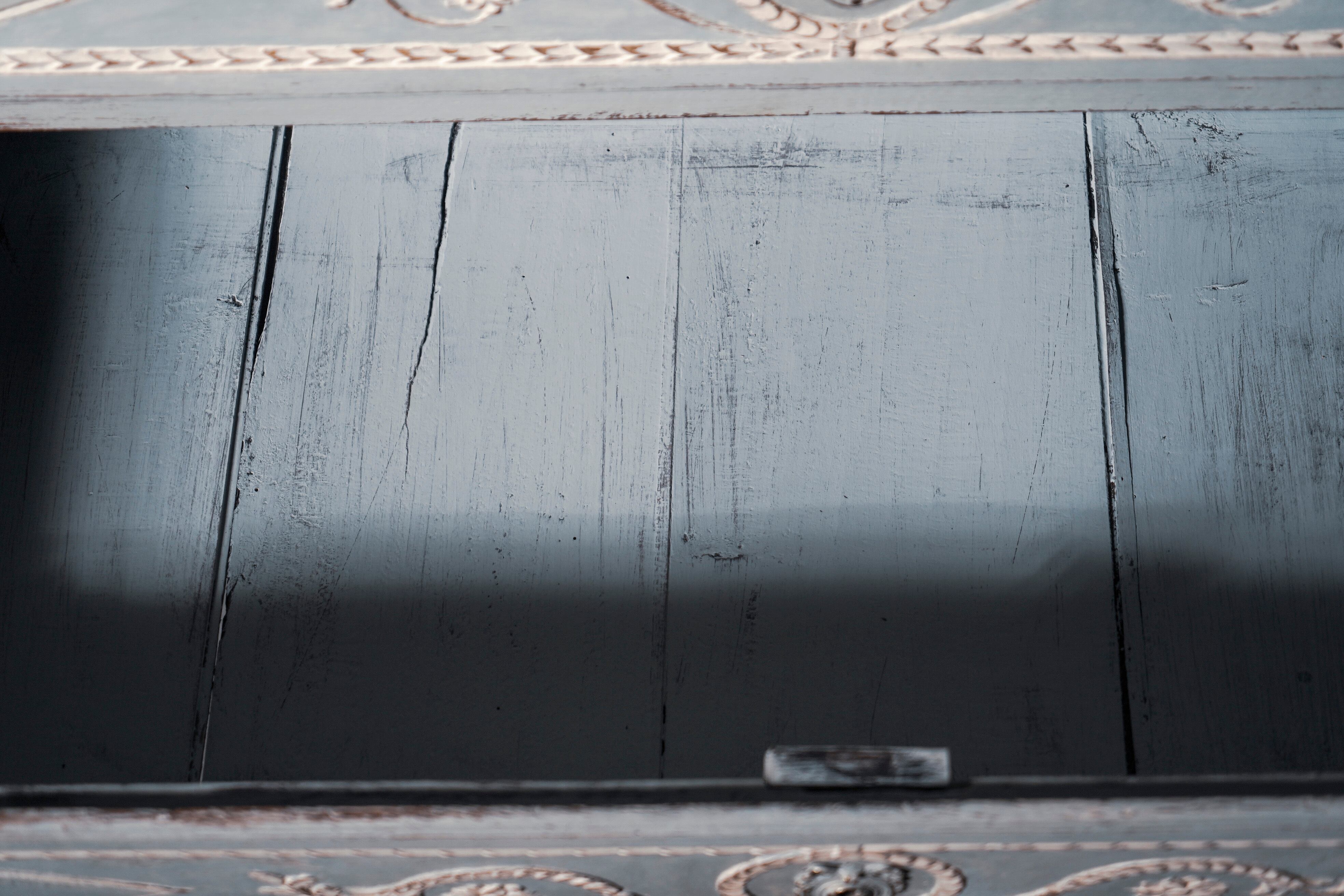 淡いブルーのカラーリングが上品なフランスのチェスト。