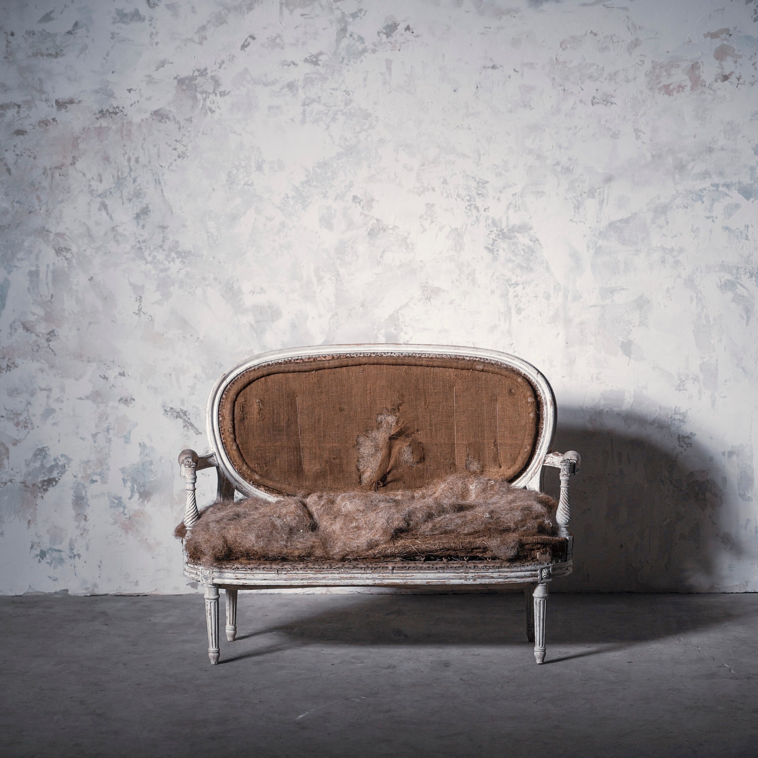 こちらは元々張られていたシートを剥がし、あえてジュート下地のままの姿にしてあるヌード家具になります。