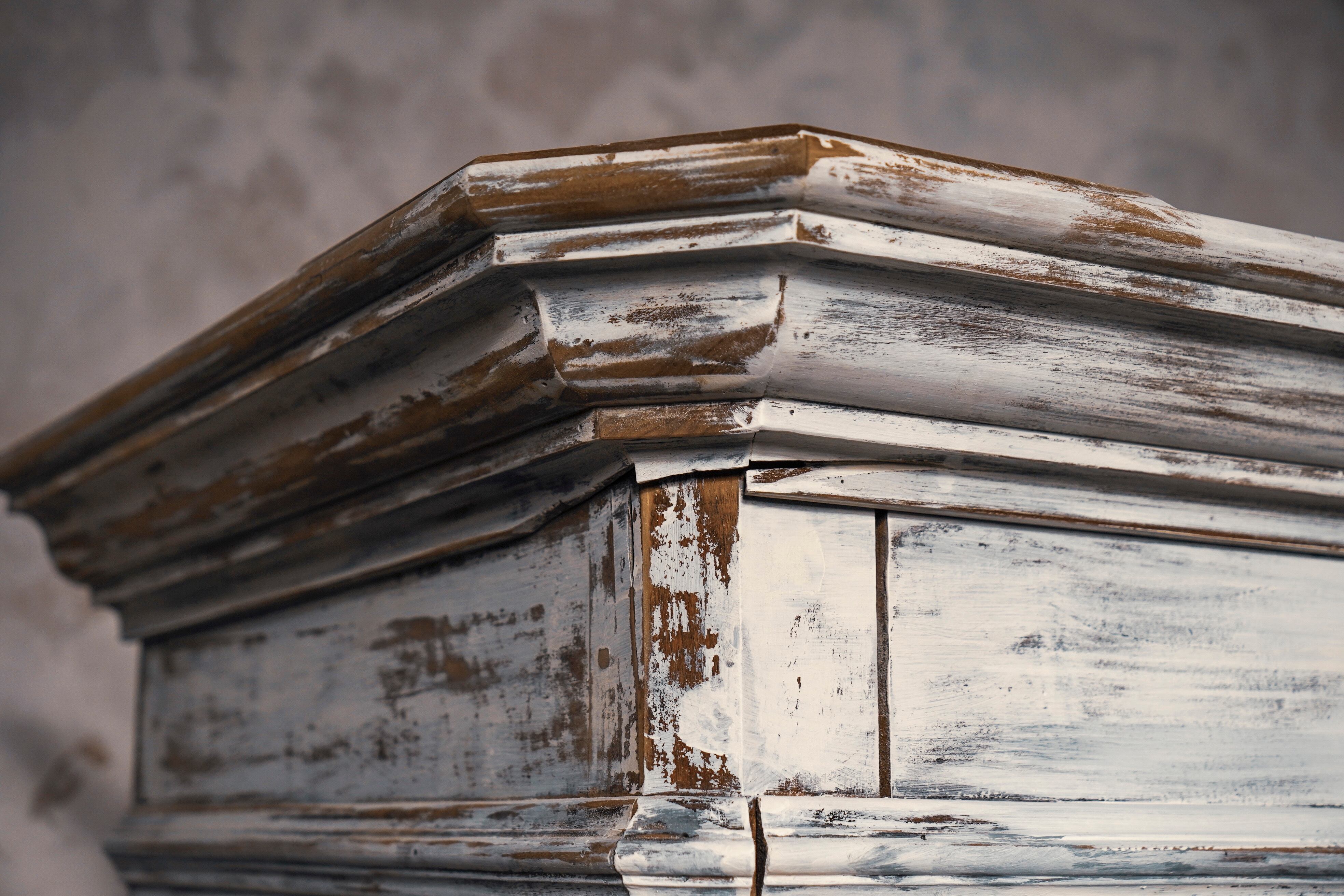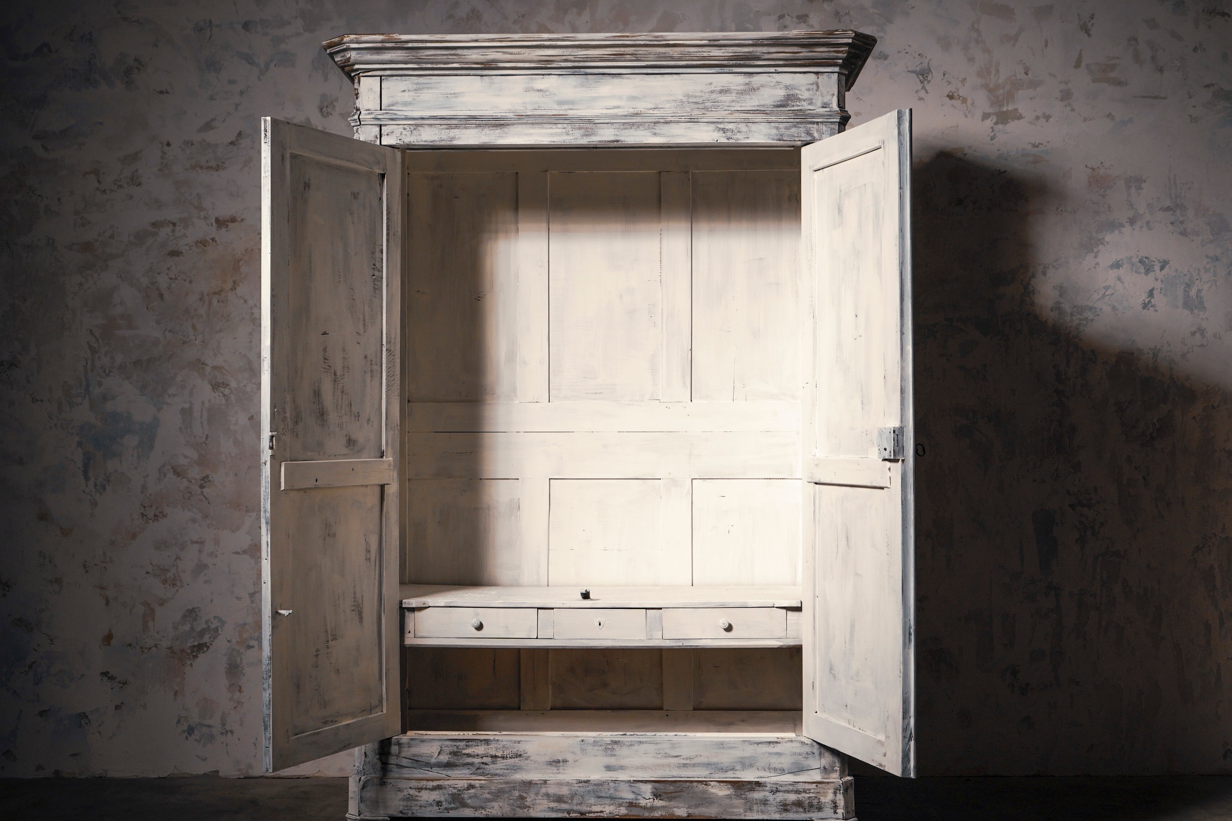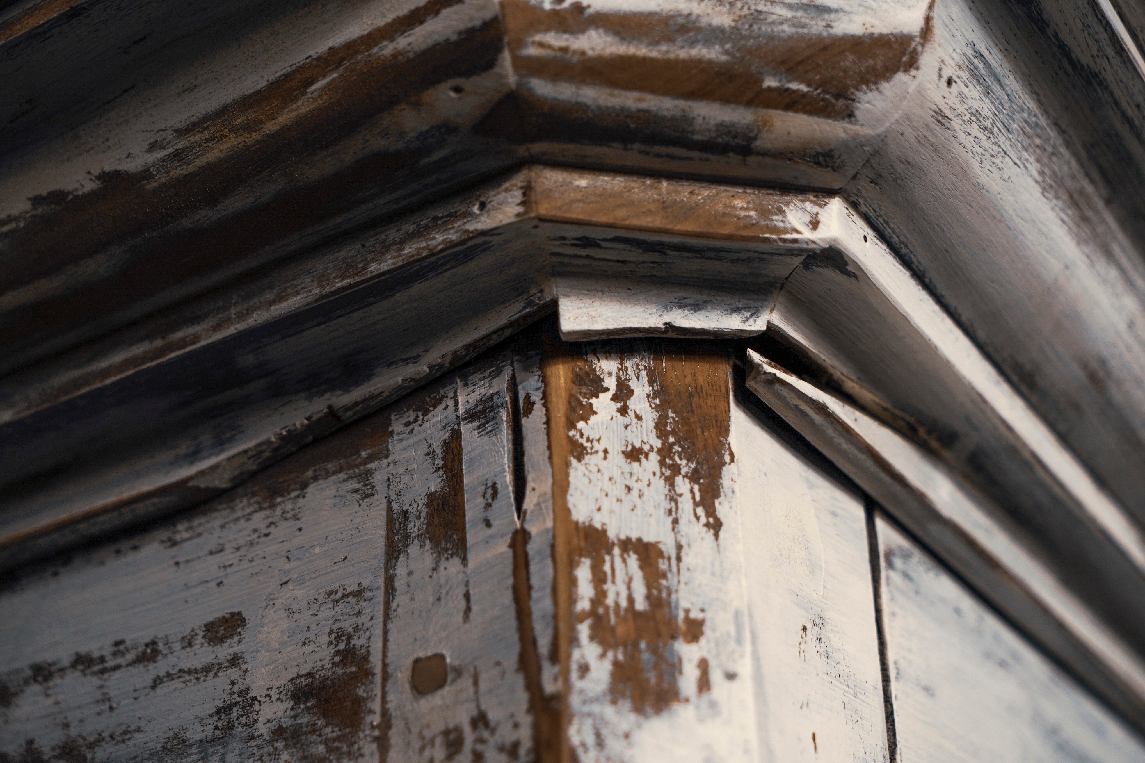 シャビーなペイントが印象的なアルモワールキャビネット。