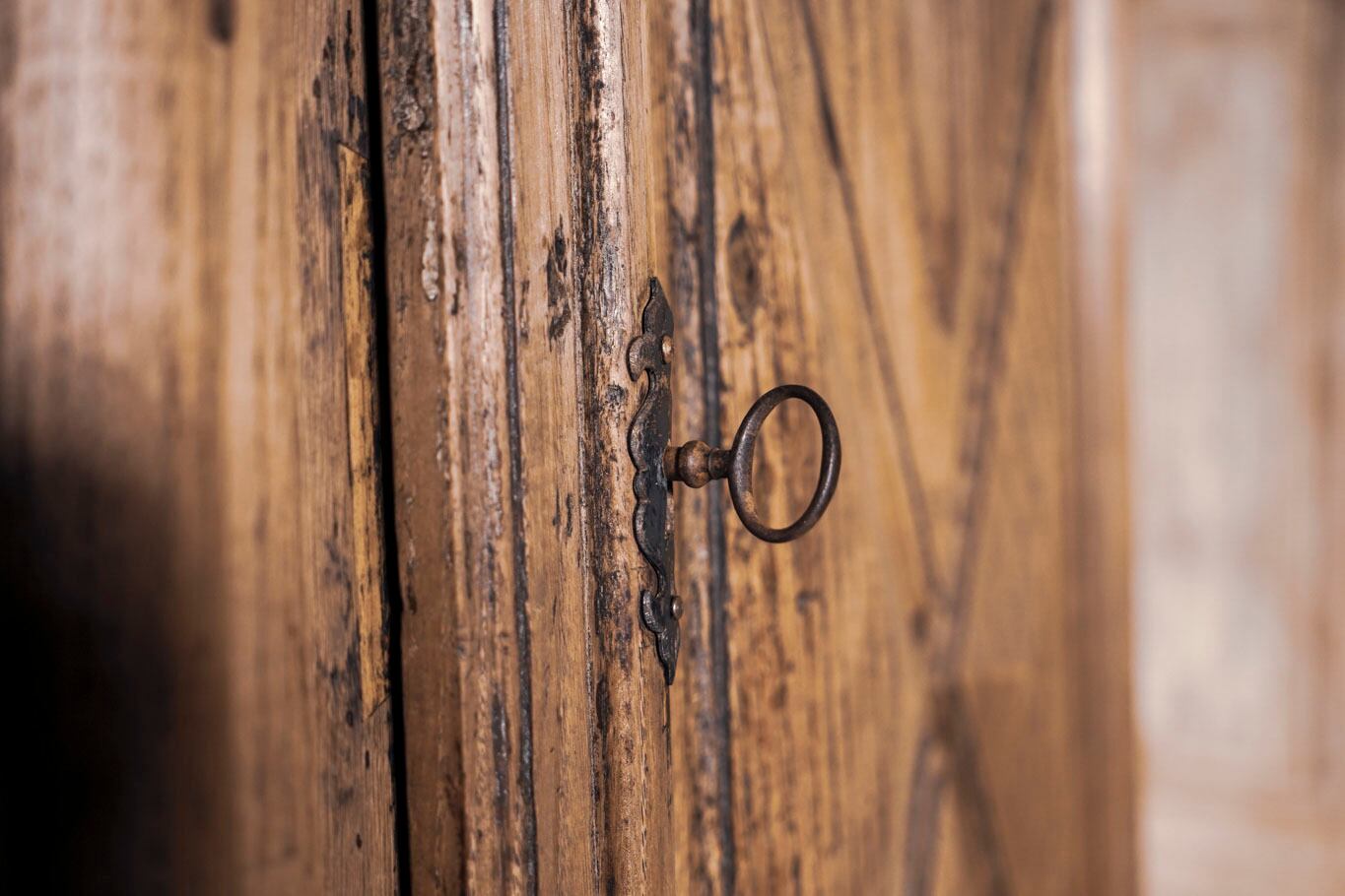 扉の直線的な木目と、下部の流線的な木目の流れ。対のバランスが見事です。
