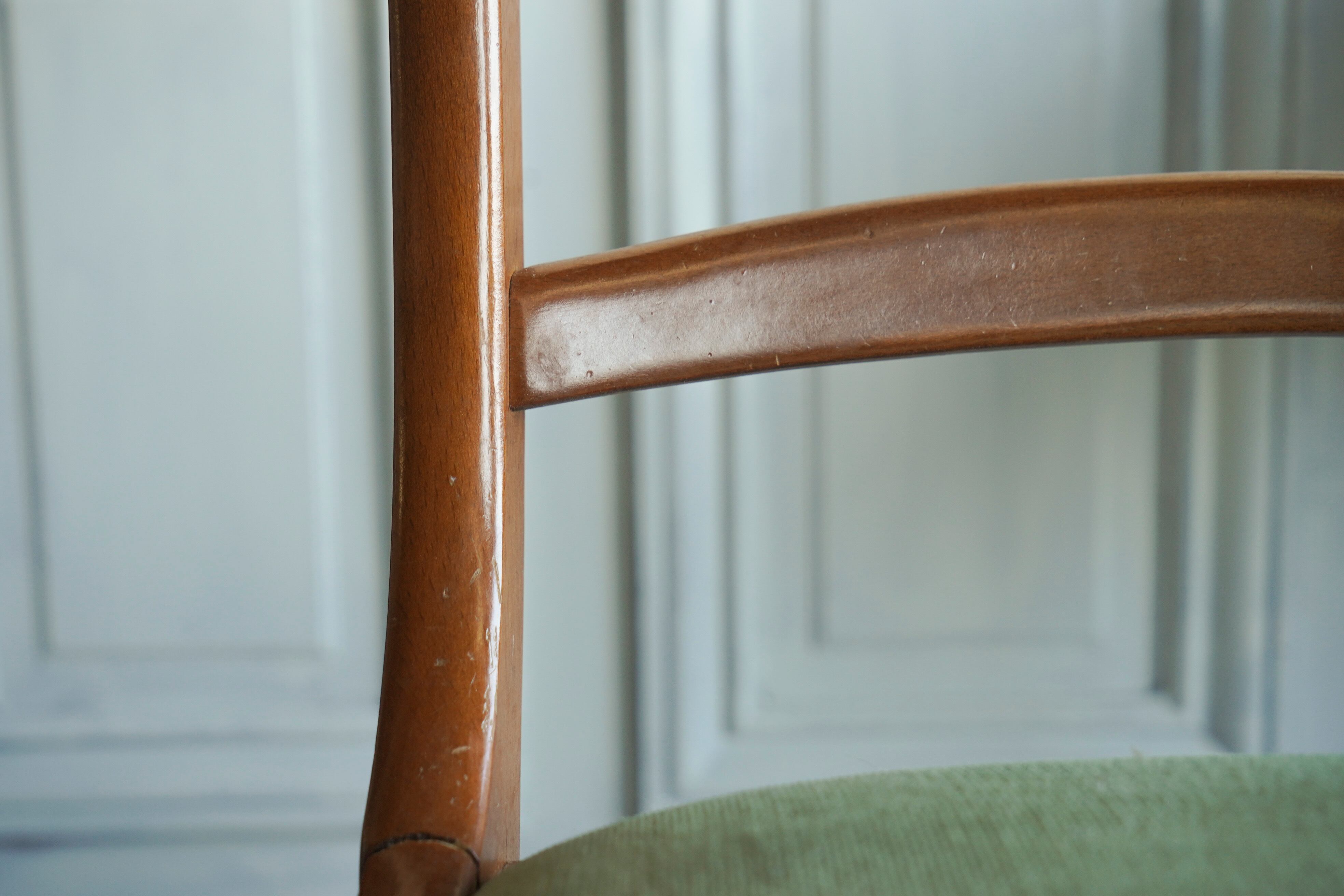 優しいペールグリーンのファブリックが印象的なチェアーです。