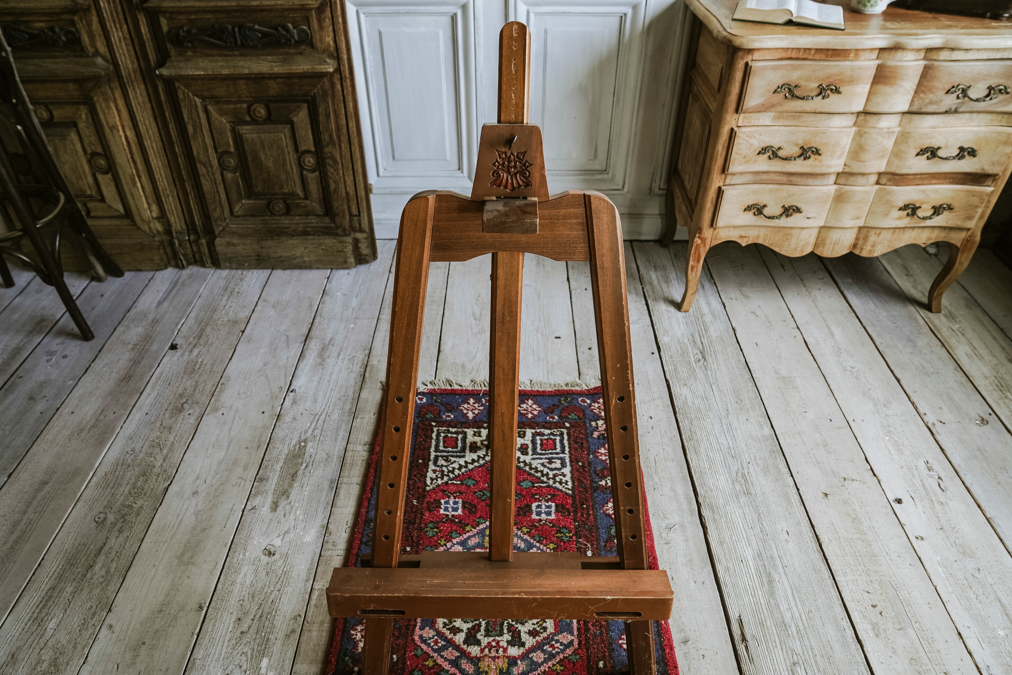 しっかりした造りで存在感のあるイーゼル。