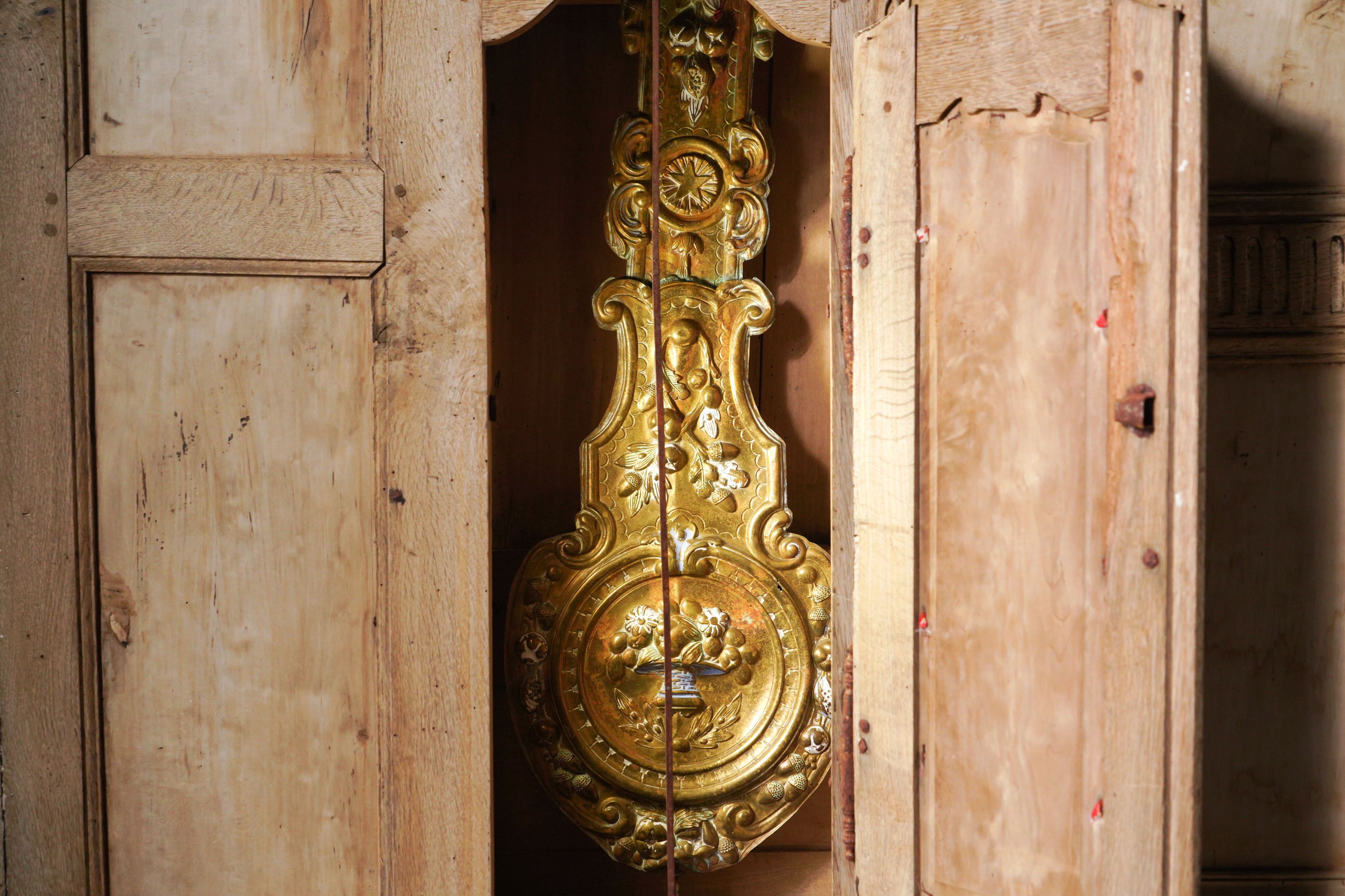 時計は現在動きませんが、時計の上下にあるゴールドの装飾が美しく、ディスプレイとして充分お楽しみいただけます。