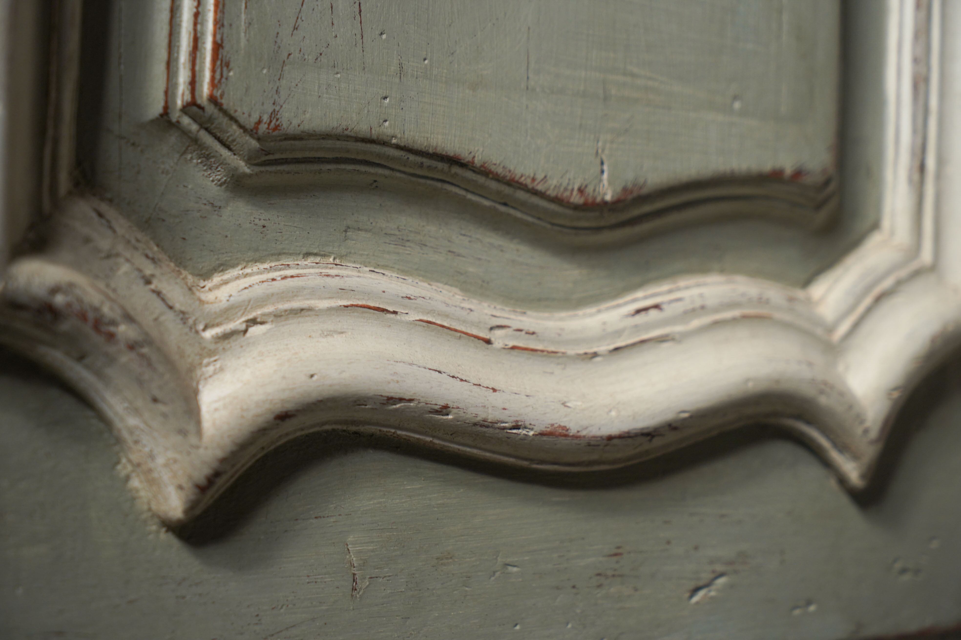 グレーがかった淡いブルーのペイントが、大人の女性らしい落ち着きのある雰囲気を漂わせています。