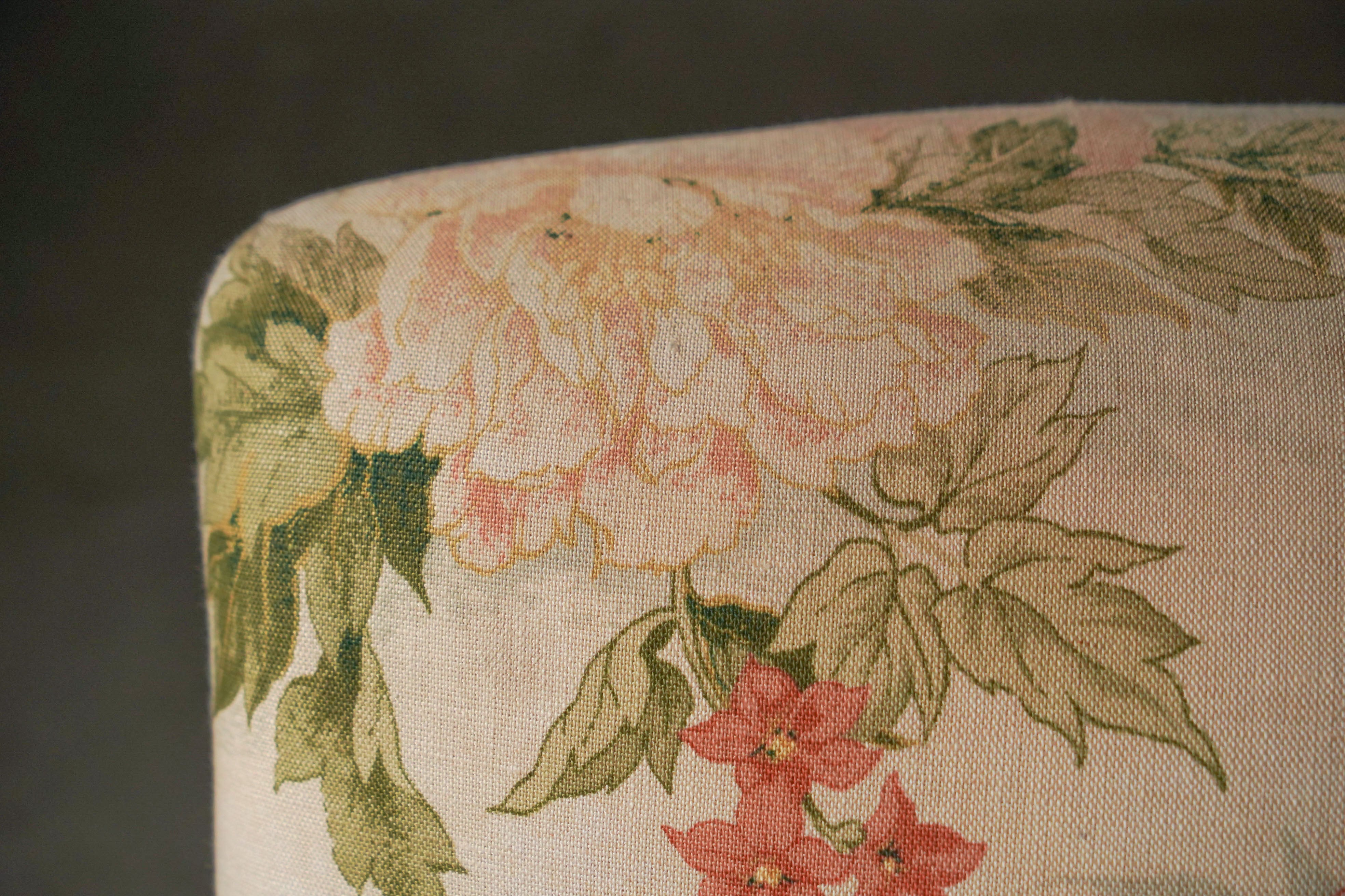 大きな花柄で優しげな色味のファブリックが、エレガントな雰囲気を醸し出しています。
