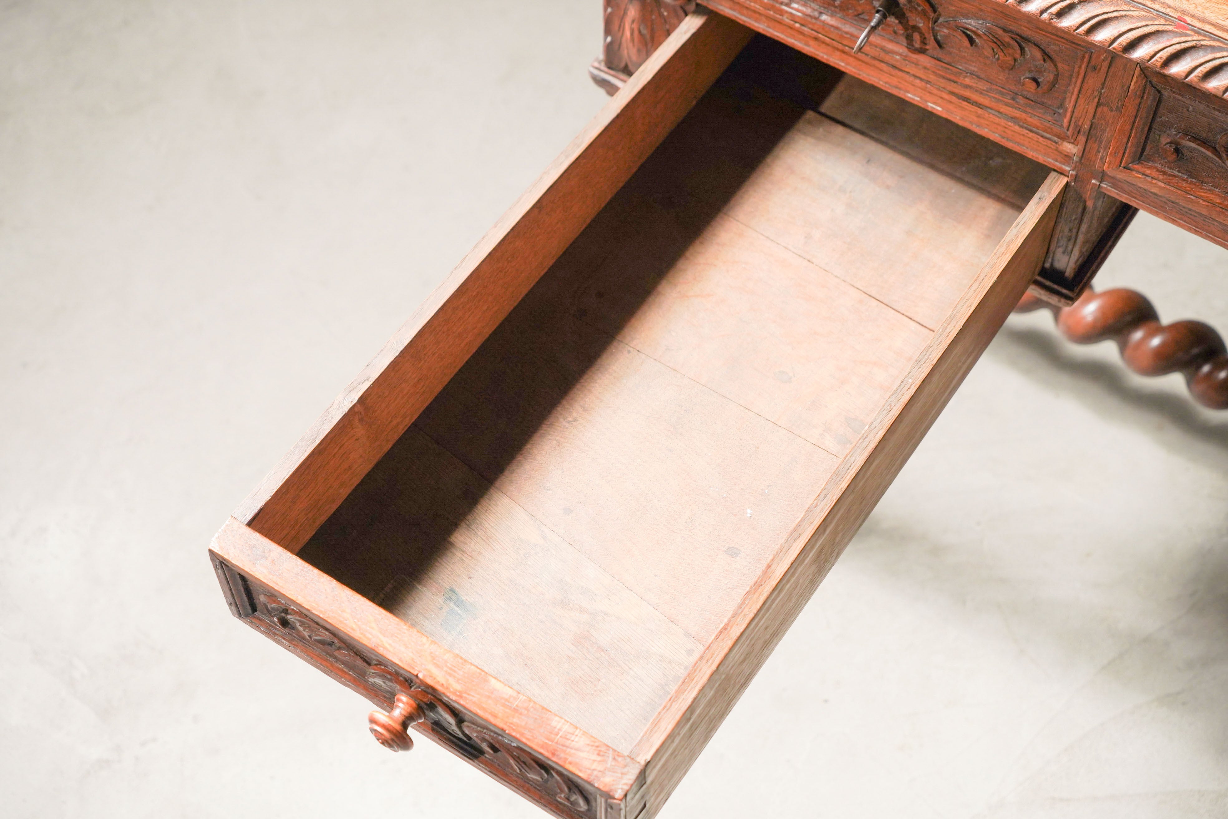 テーブル/デスク/ツイストレッグデスク/1880年代/フランス家具/オーク材/ディスプレイ/収納/アンティーク/引き出し