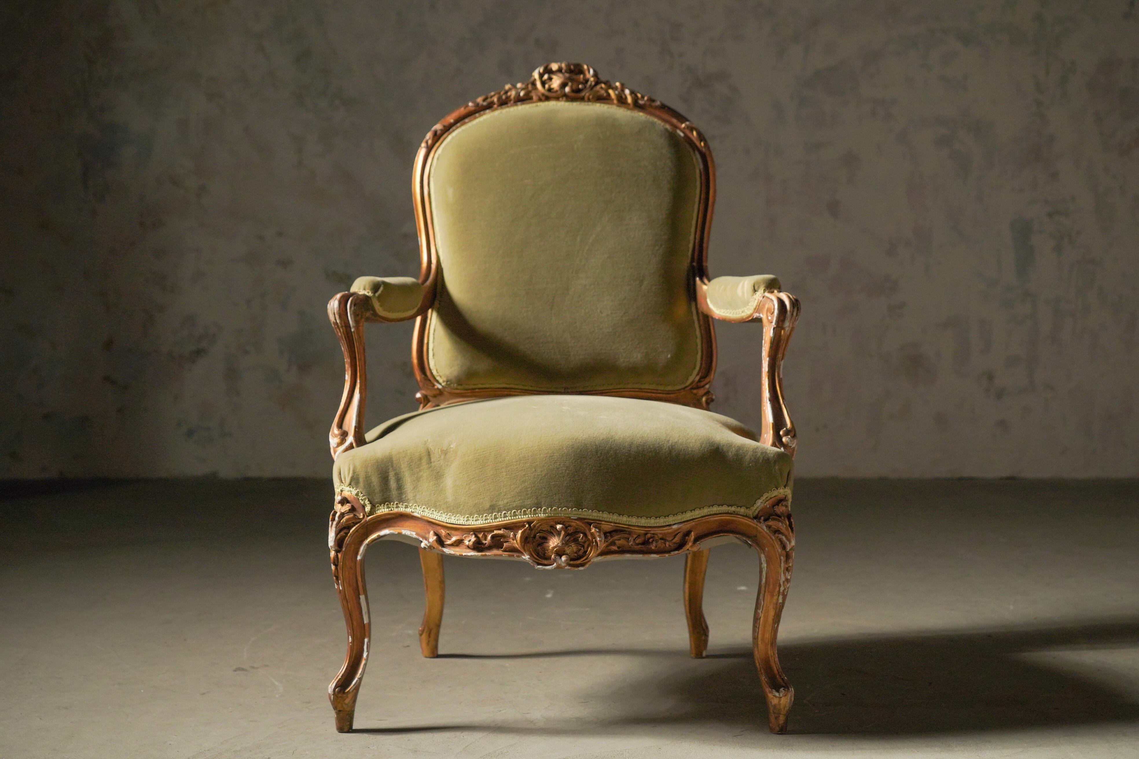 アンティークチェア/ソファ/彫刻/グリーン/空間装飾/ディスプレイ