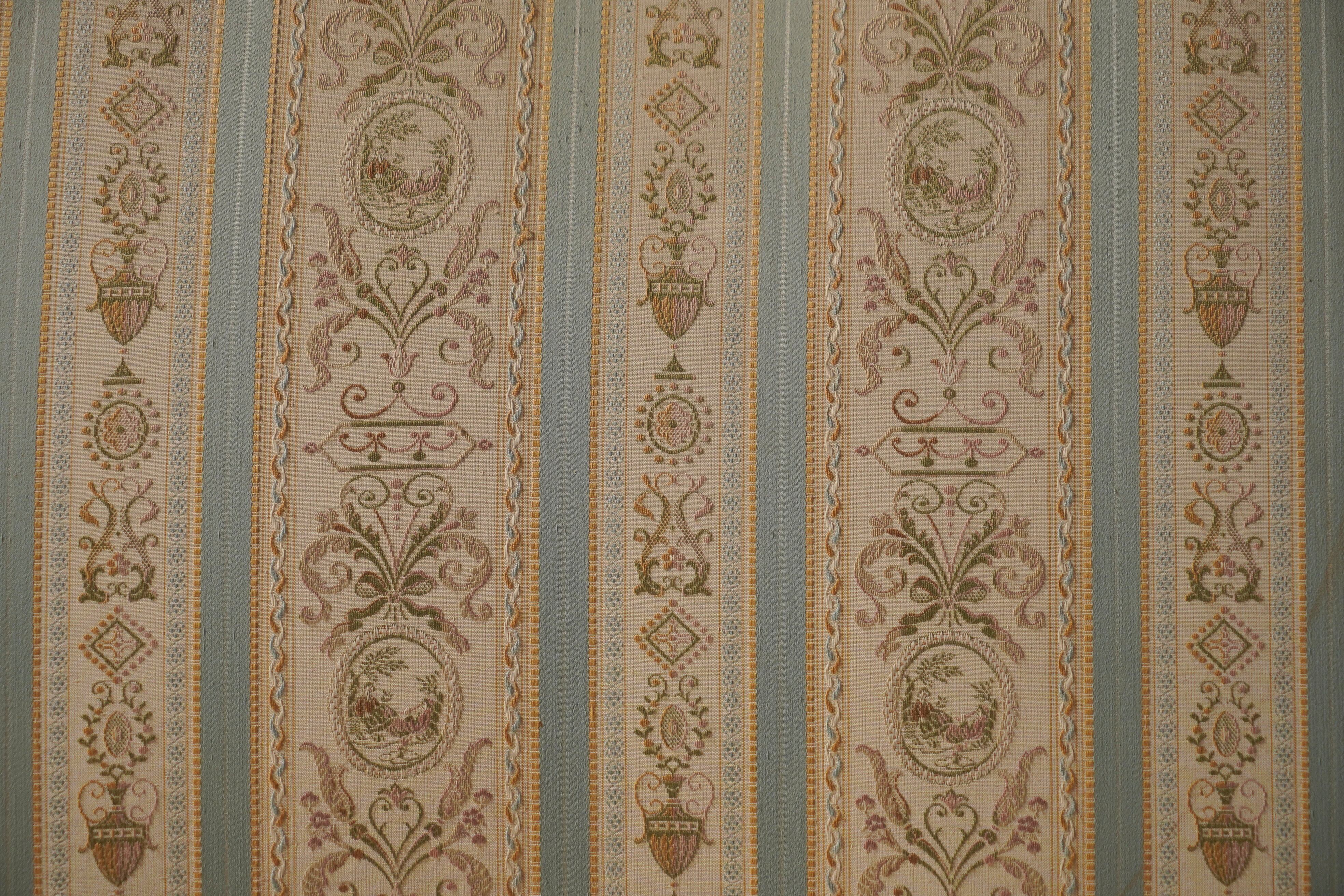 テキスタイル、ボタニカル柄のエンブレム、フレームの彫刻。