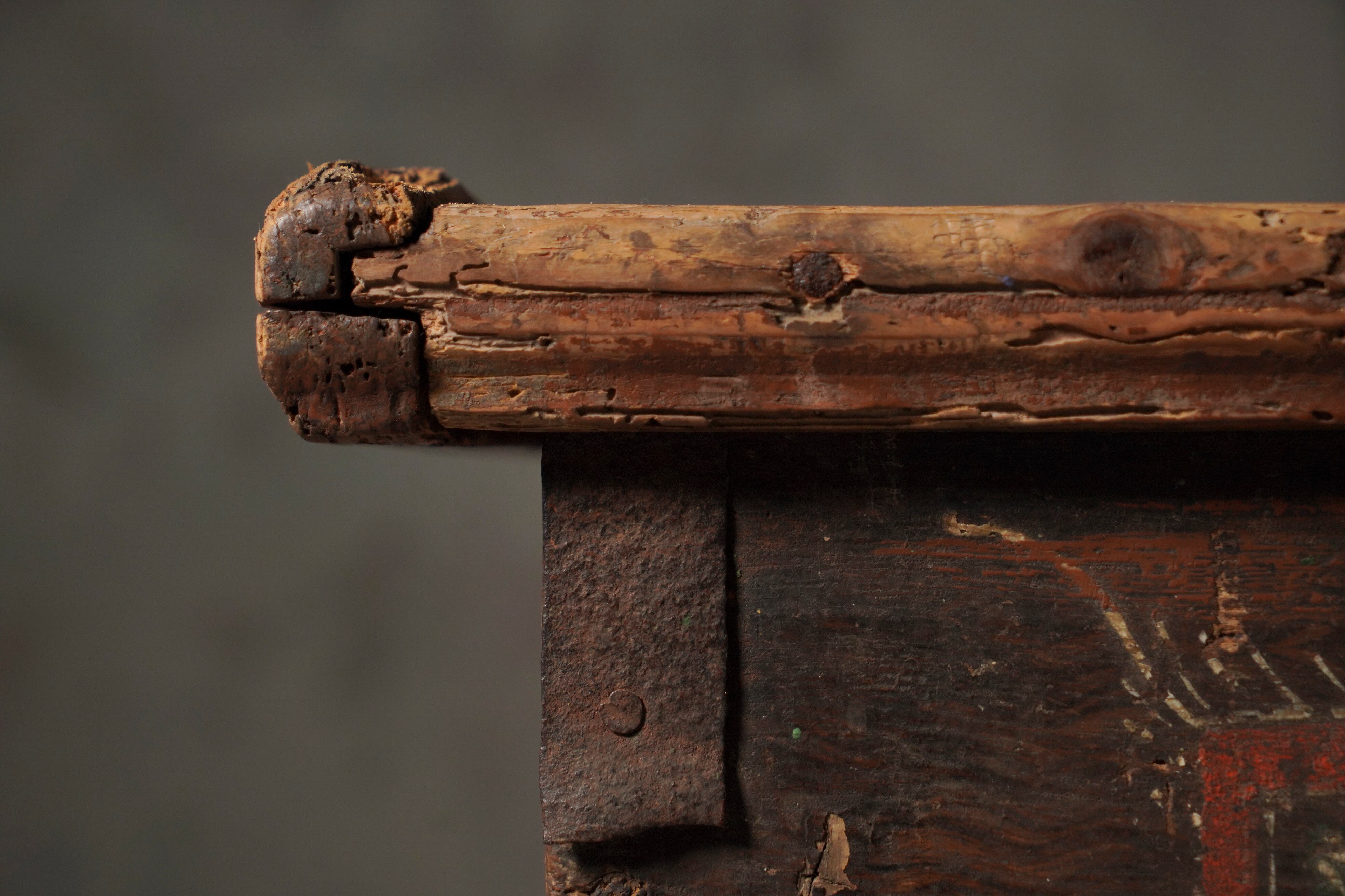 木肌の深い色味に、掠れたペイントがシャビーシックな
