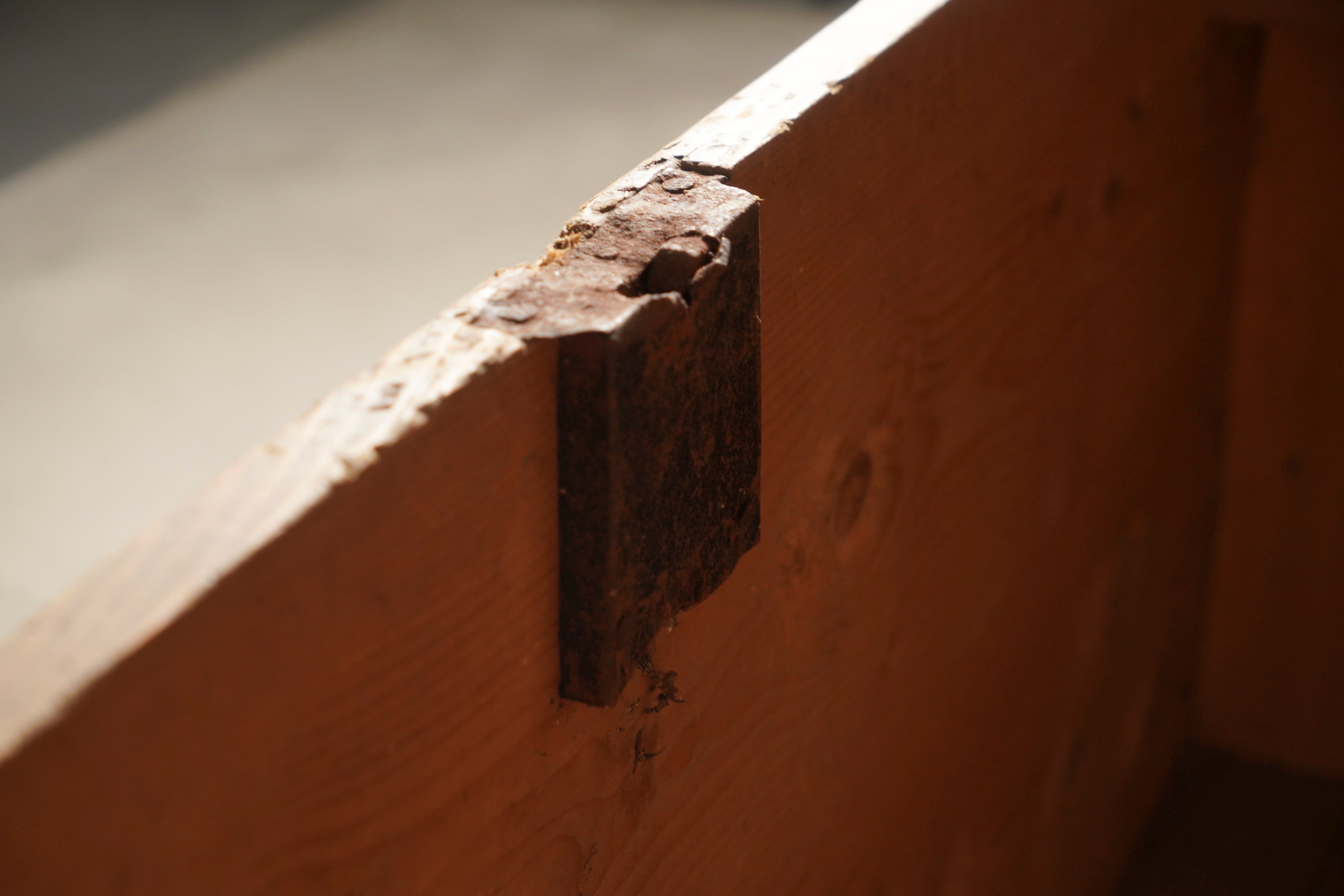 ※金具が欠損しており、天板はほぼ乗っているだけの状態です。