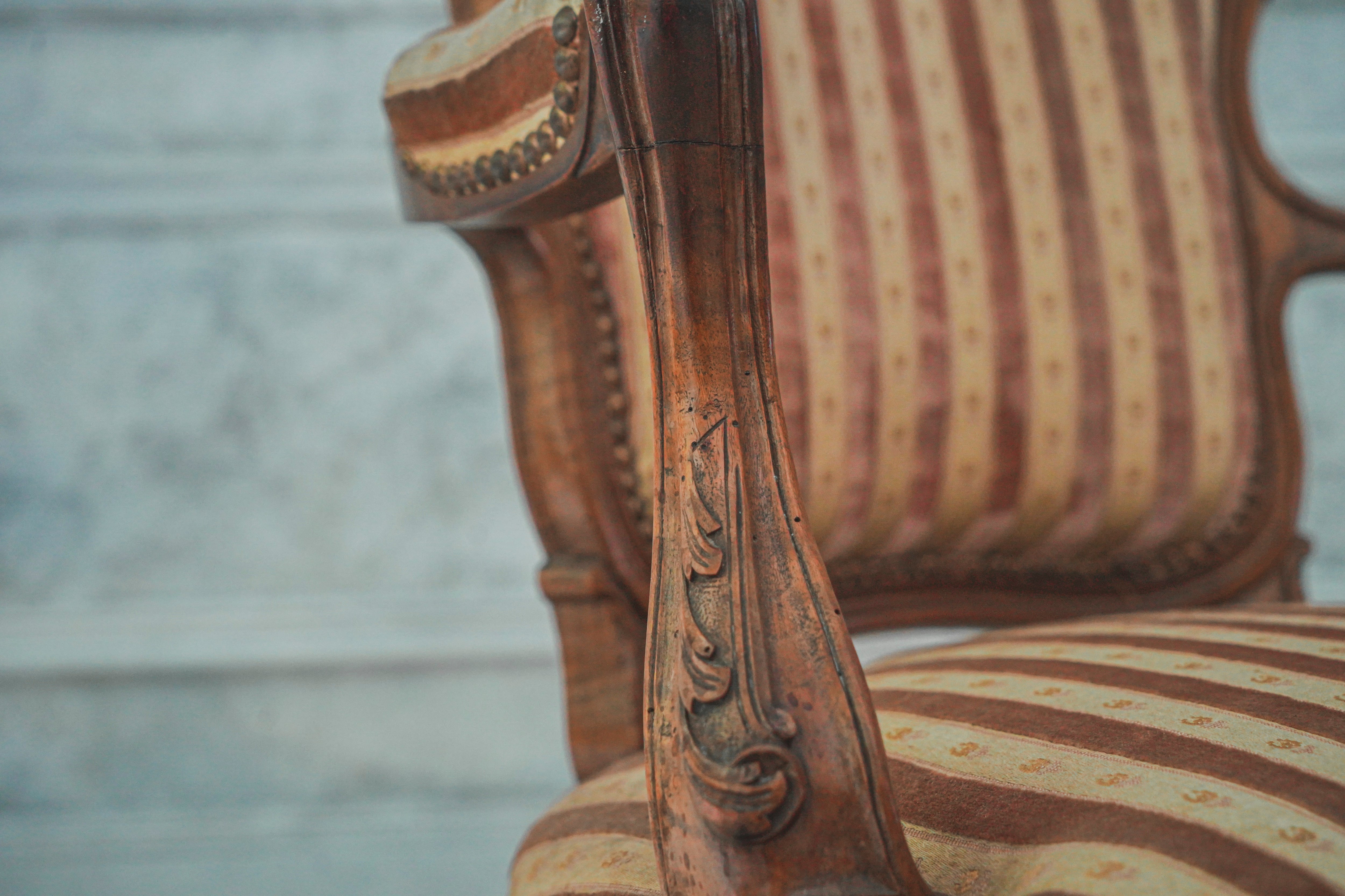 アームチェアー/チェアー/椅子/ストライプ/アンティーク